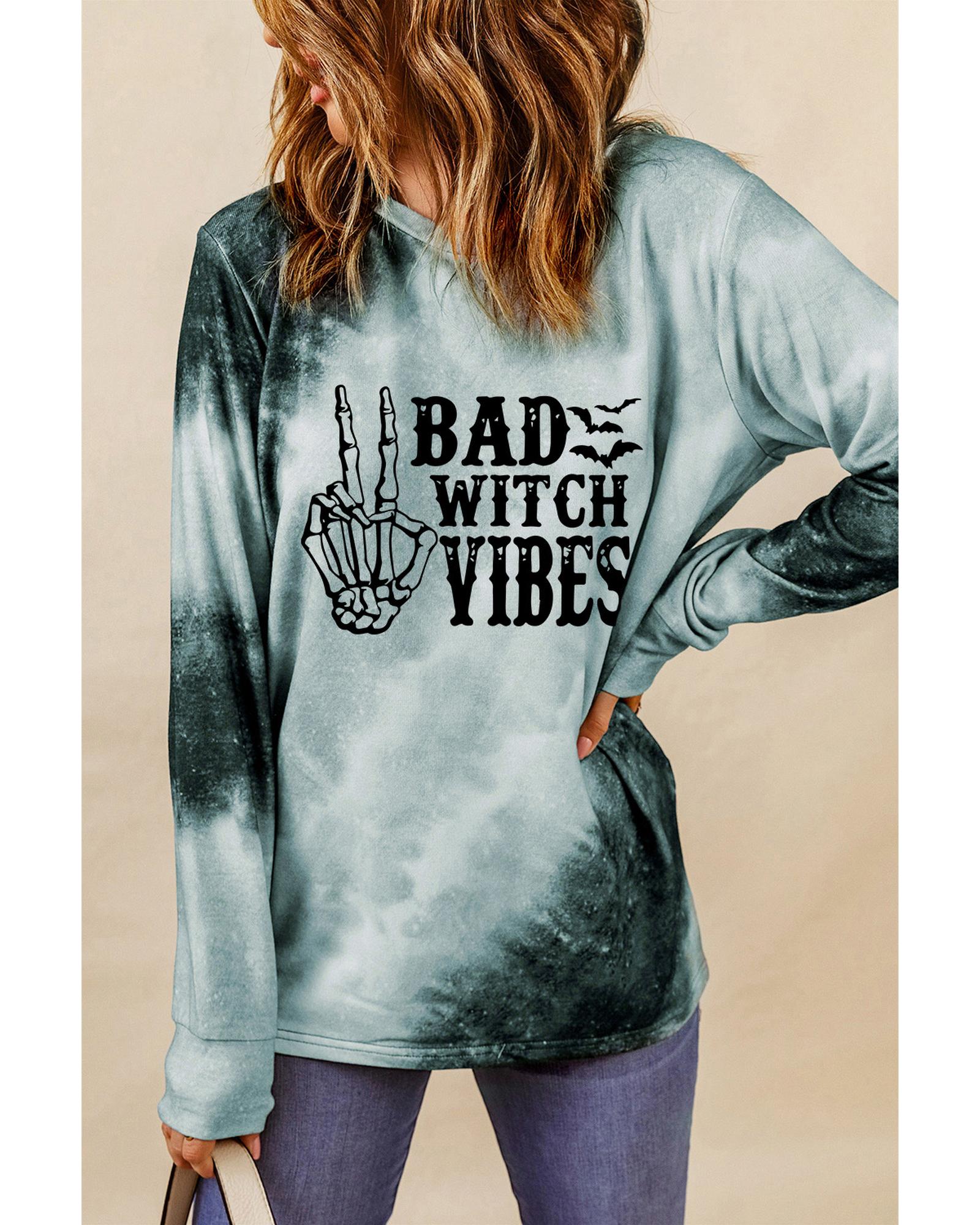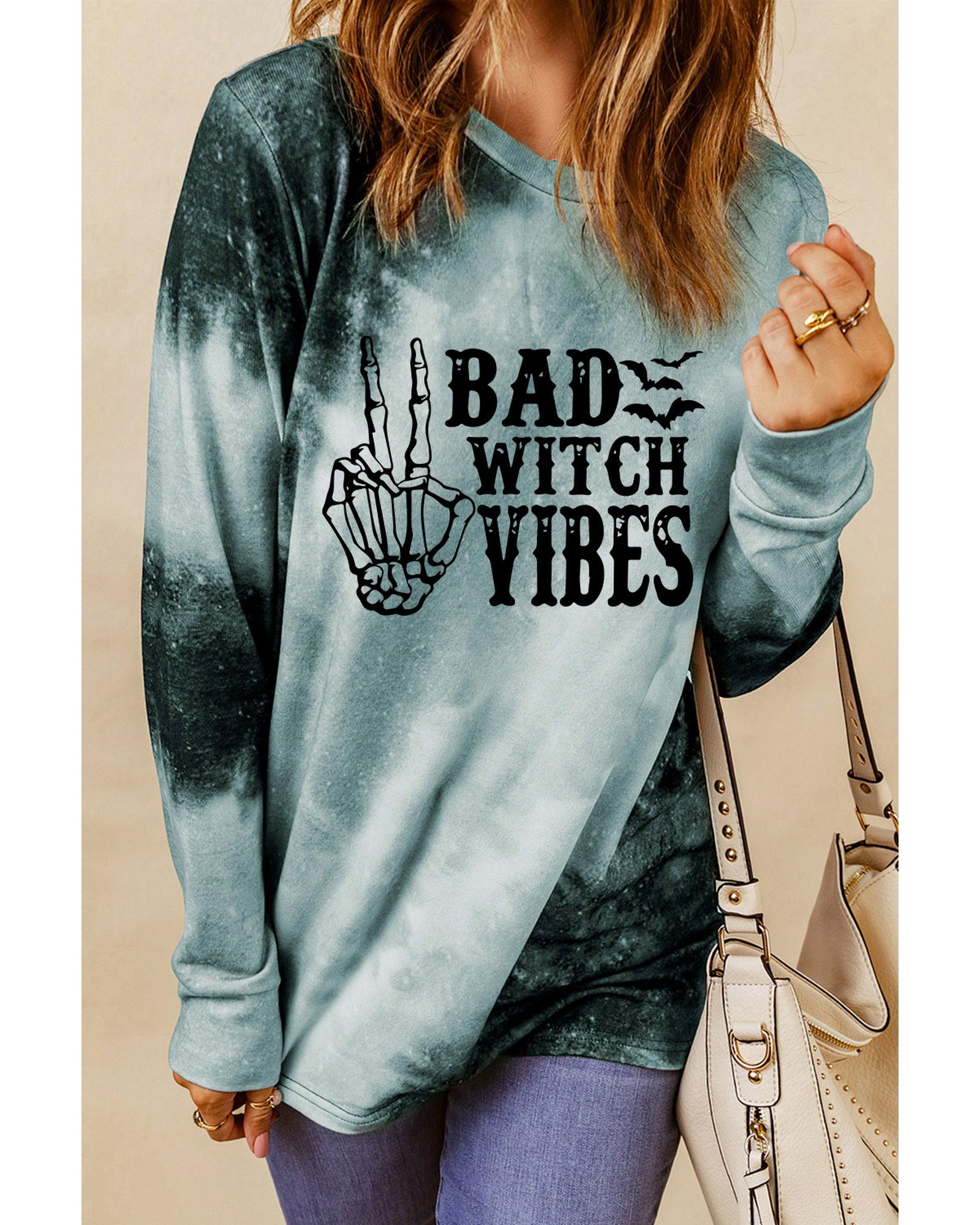 Gray Tie Dye BAD WITCH VIBES Graphic Long Sleeve Top – S