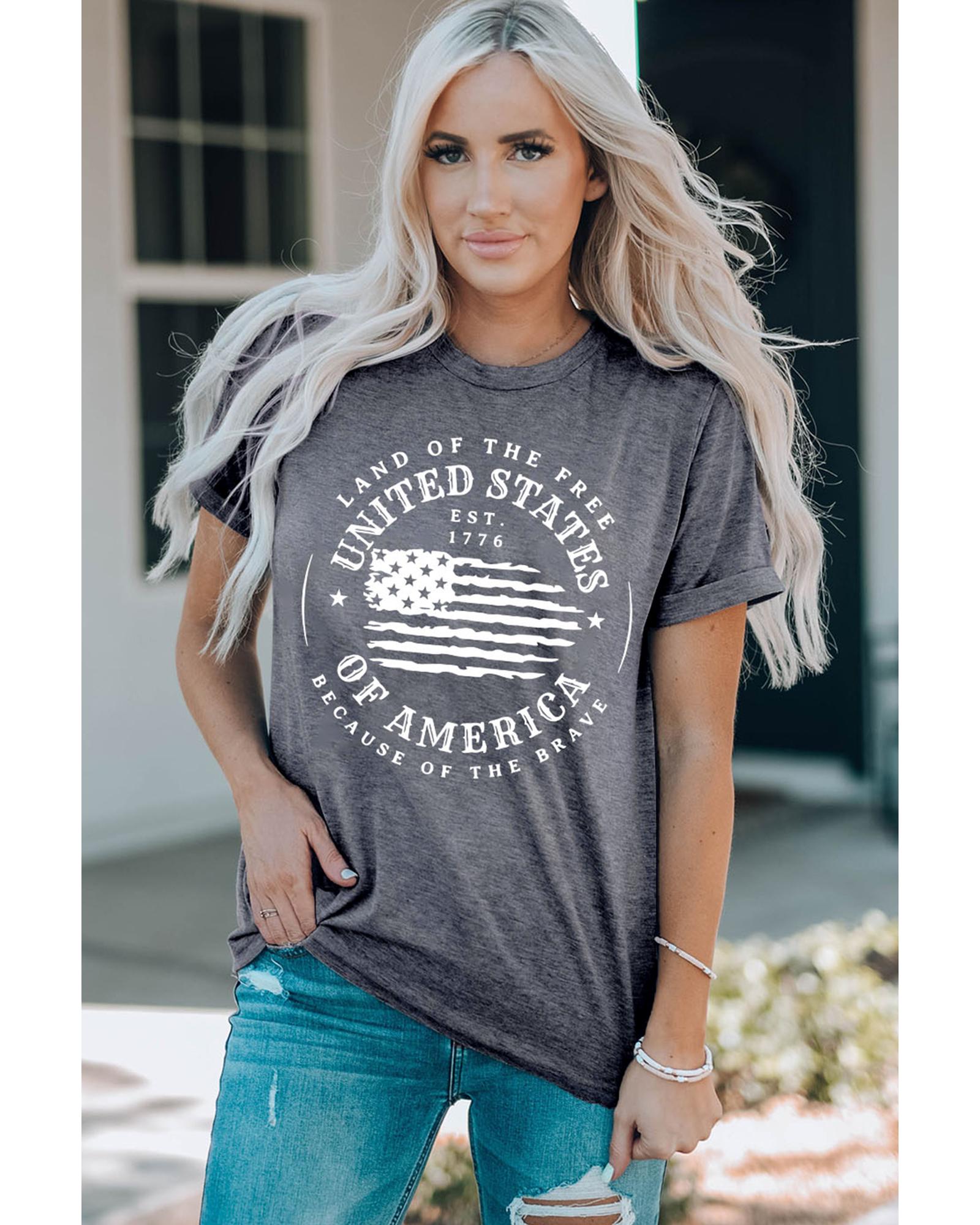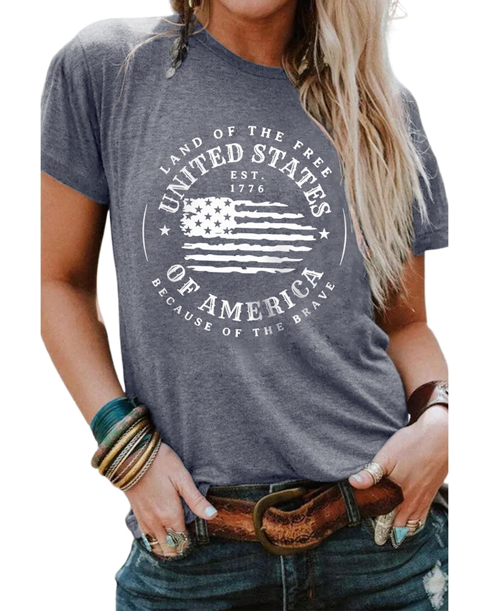 Gray United States Of America Flag Graphic Print T - Shirt Short sleeve t
