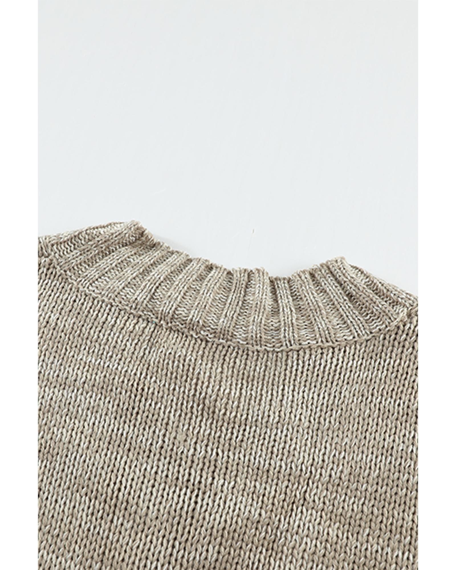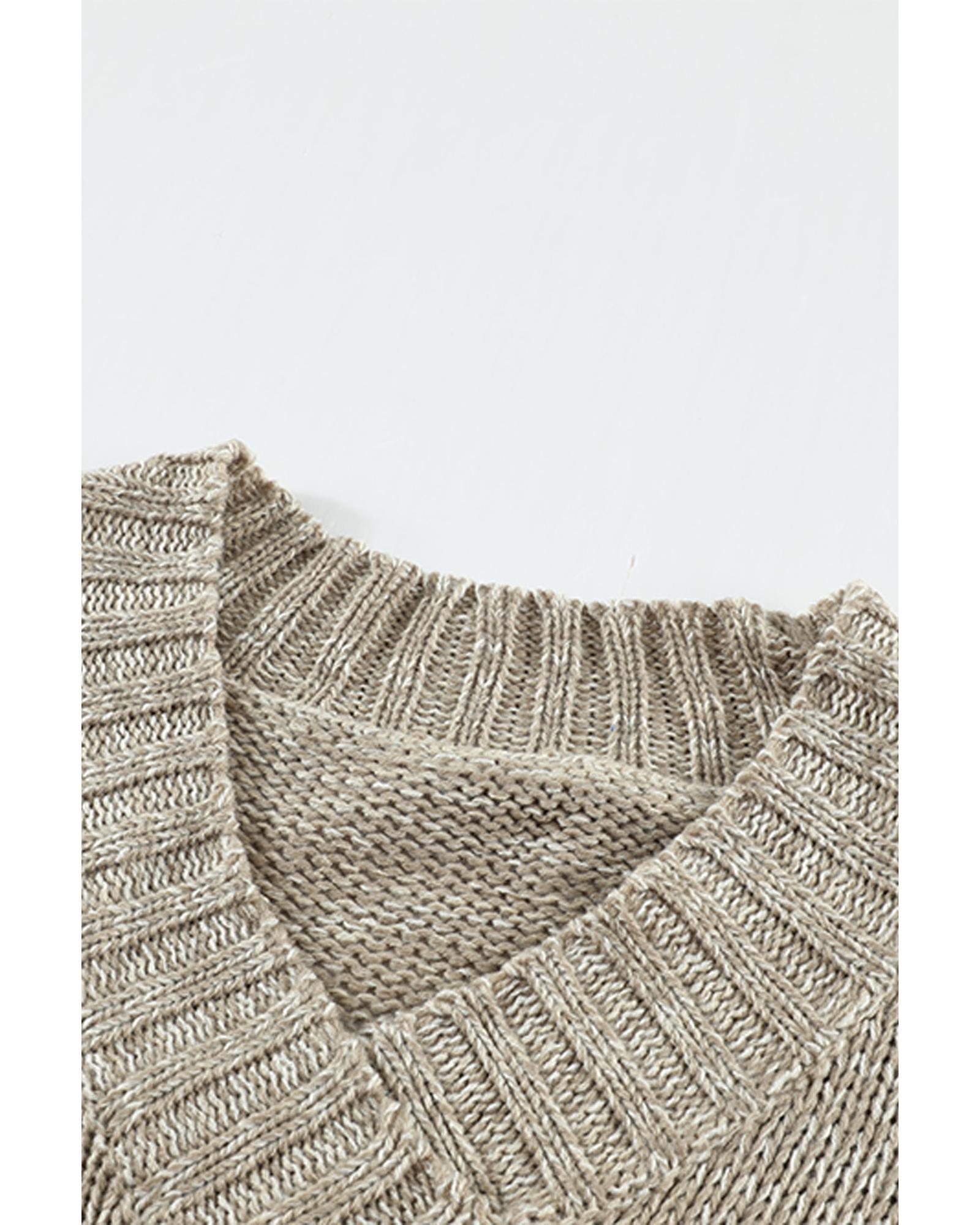 Gray V neck Drop Shoulder Knitted Sweater – M