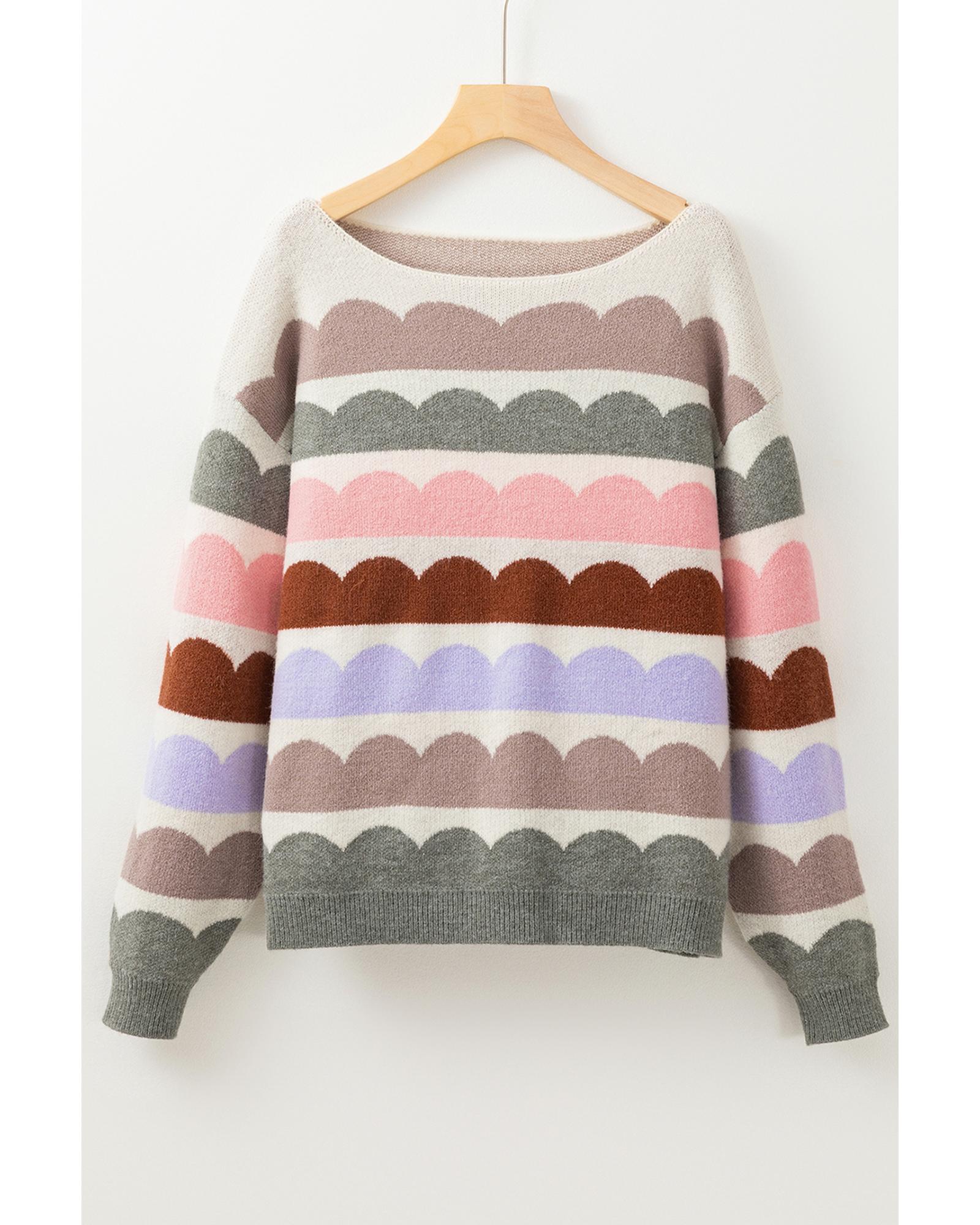Gray Wave Striped Balloon Sleeve Drop Shoulder Sweater – M