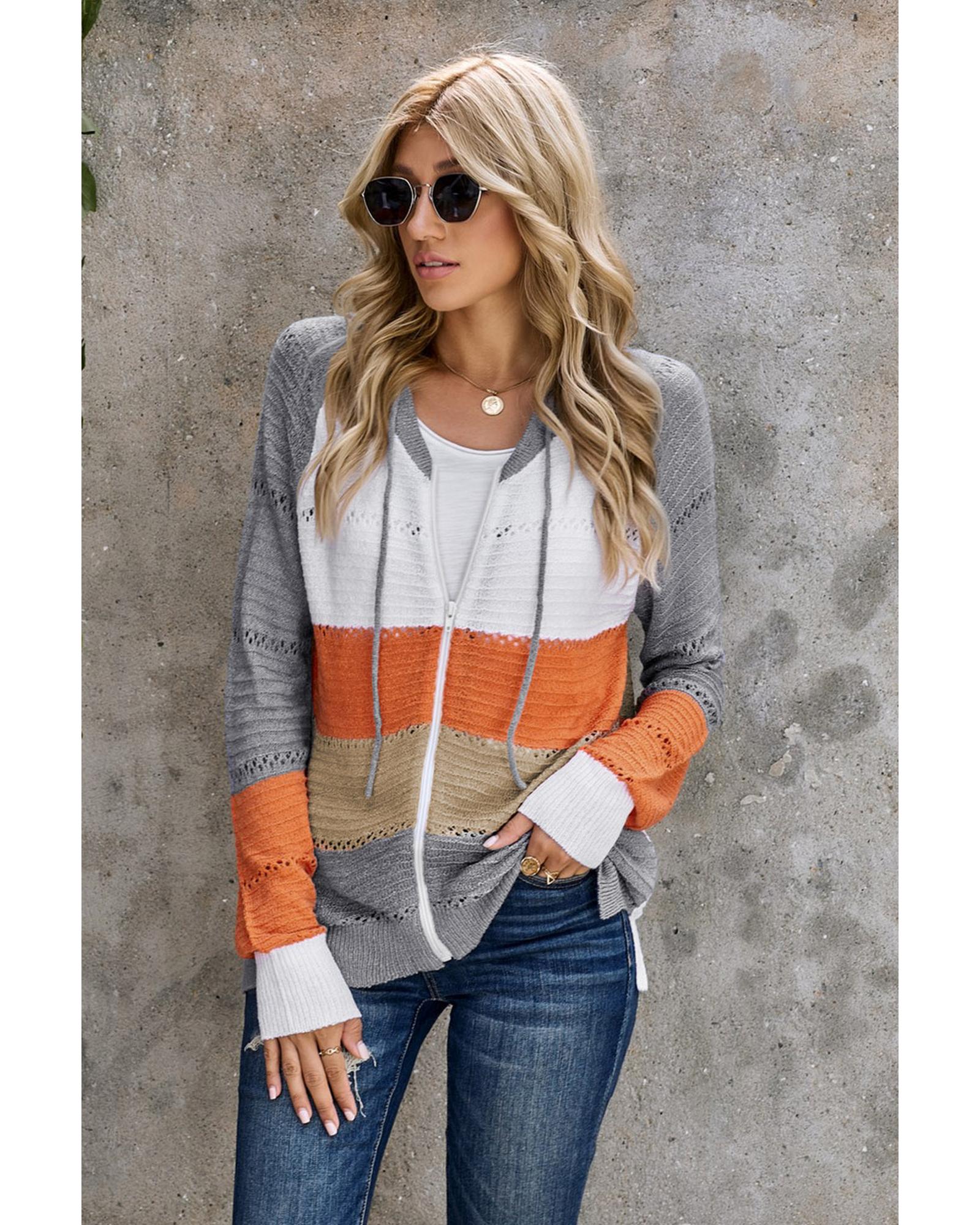 - Stylish and trendy Zipped Front Colorblock Hollow