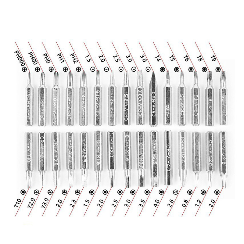 - Comprehensive 32-in-1 Kit: This all-in-one set includes a non-slip screwdriver handle, a magnetic extension rod, and 30 assorted precision bits, covering a wide variety of screw types and sizes.