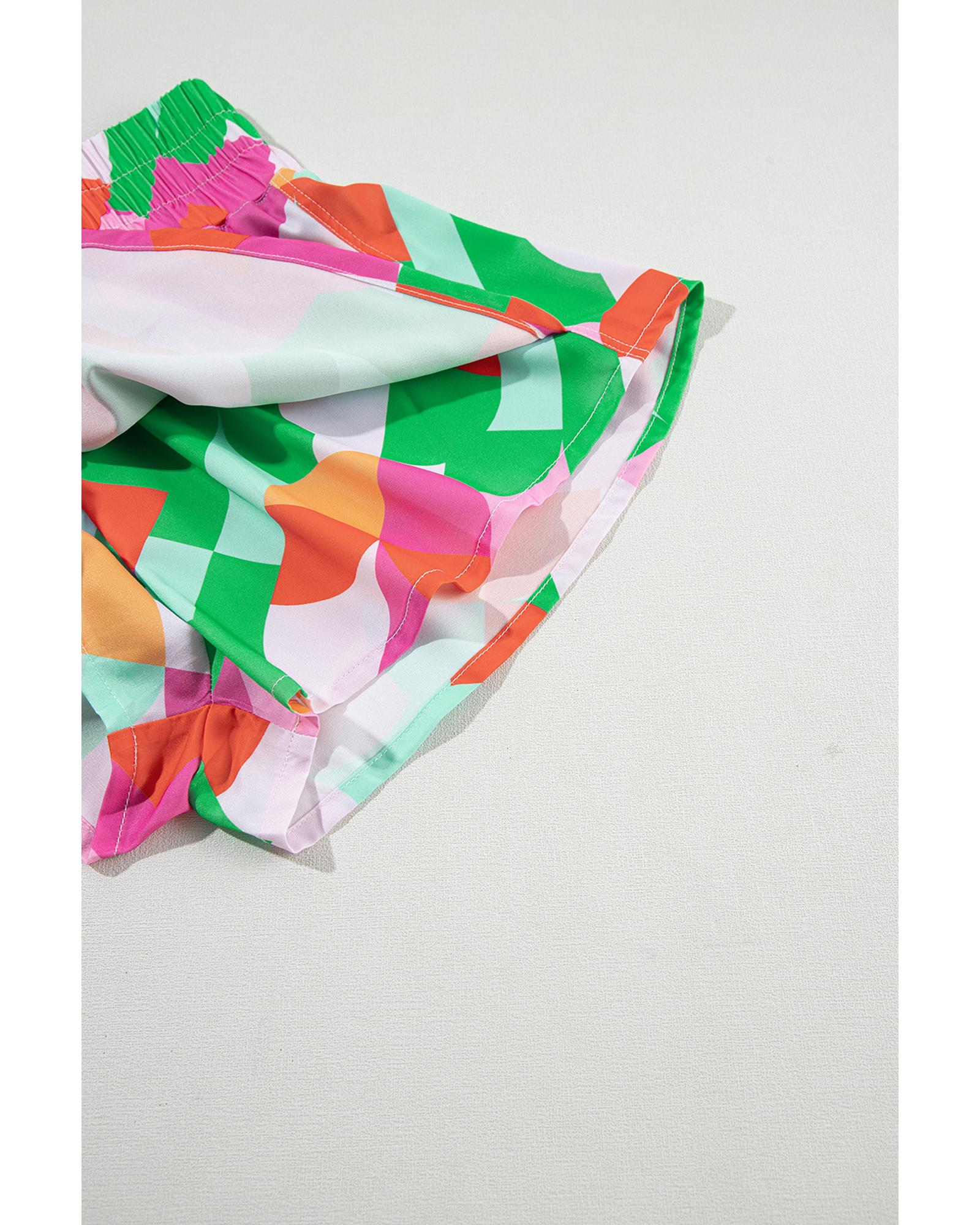 Green Abstract Print Smock Waist Casual Shorts – XL