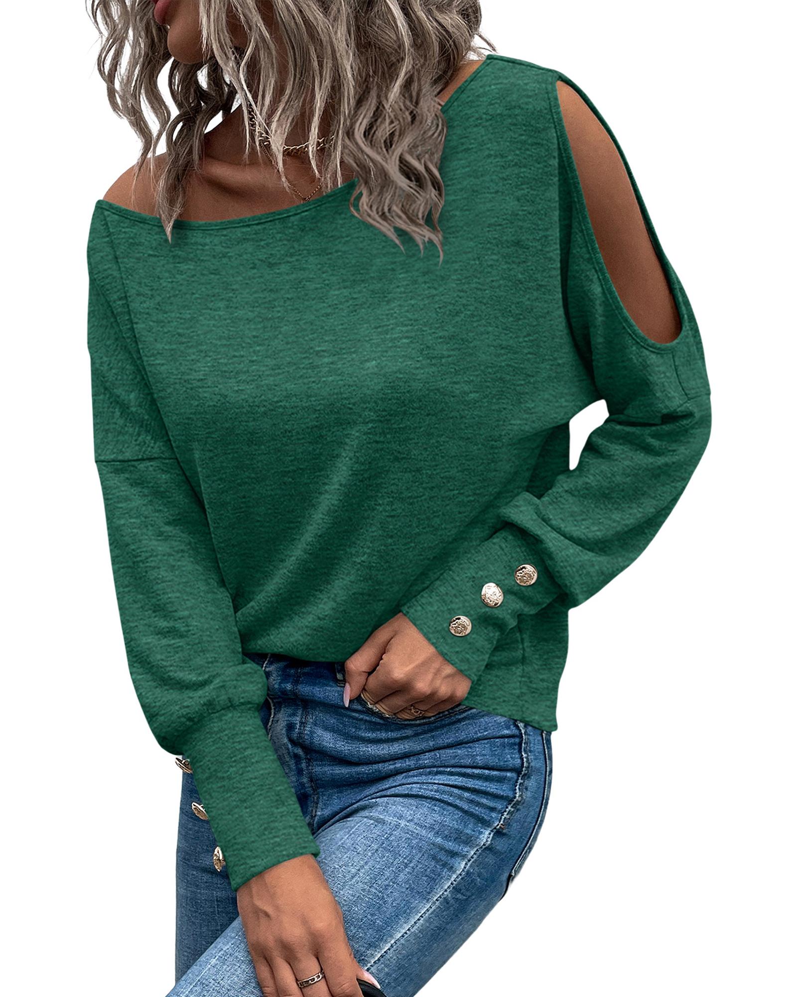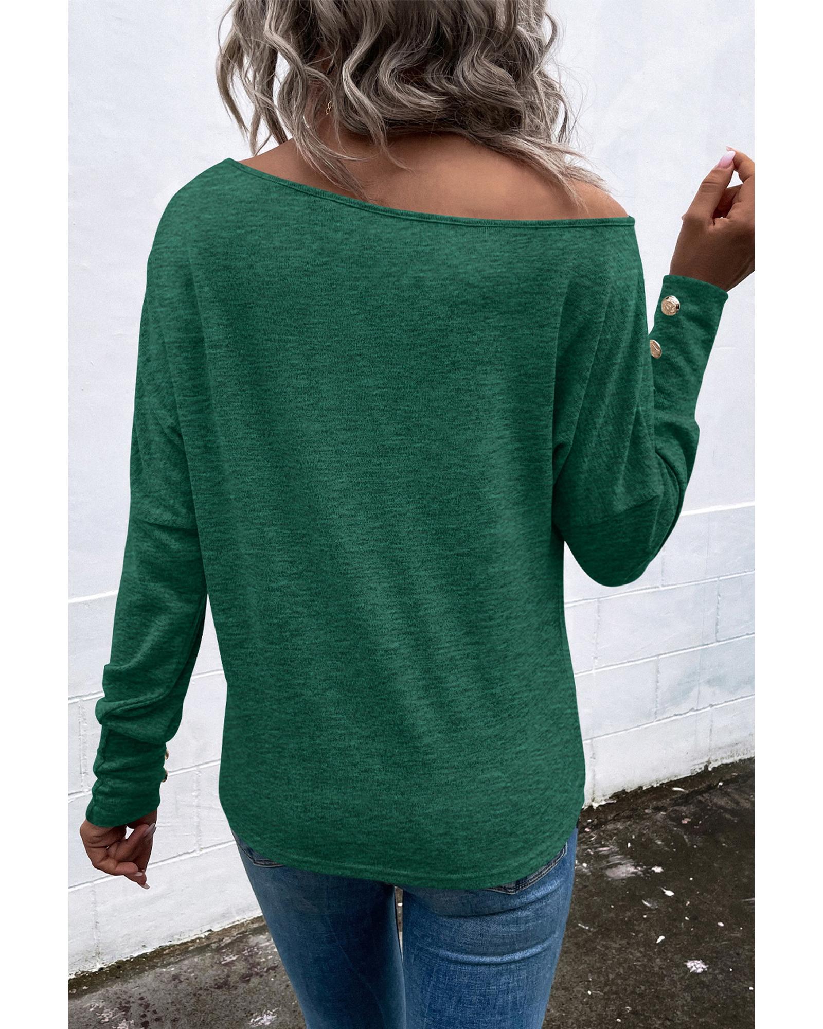 Green Asymmetrical Cut Out Buttoned Long Sleeve Top – L