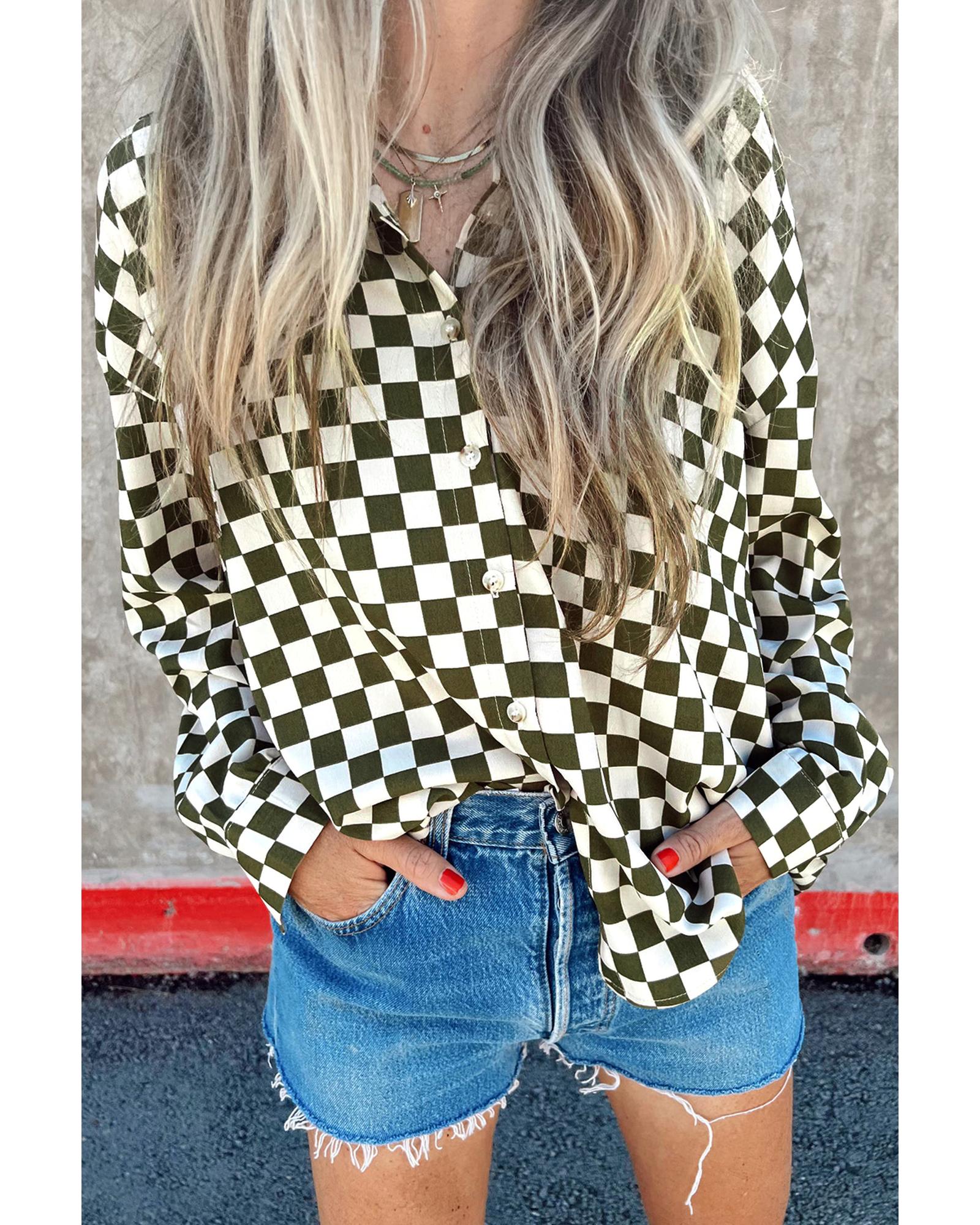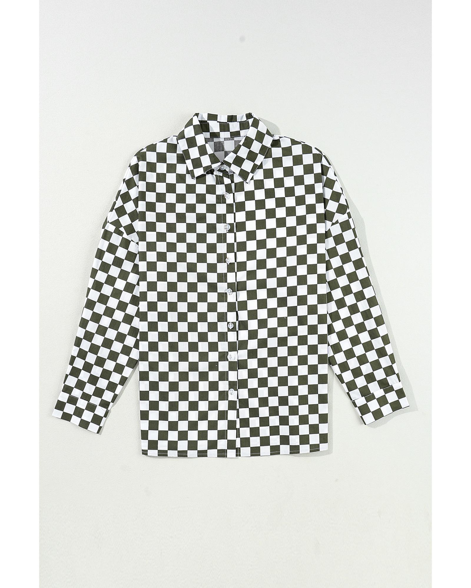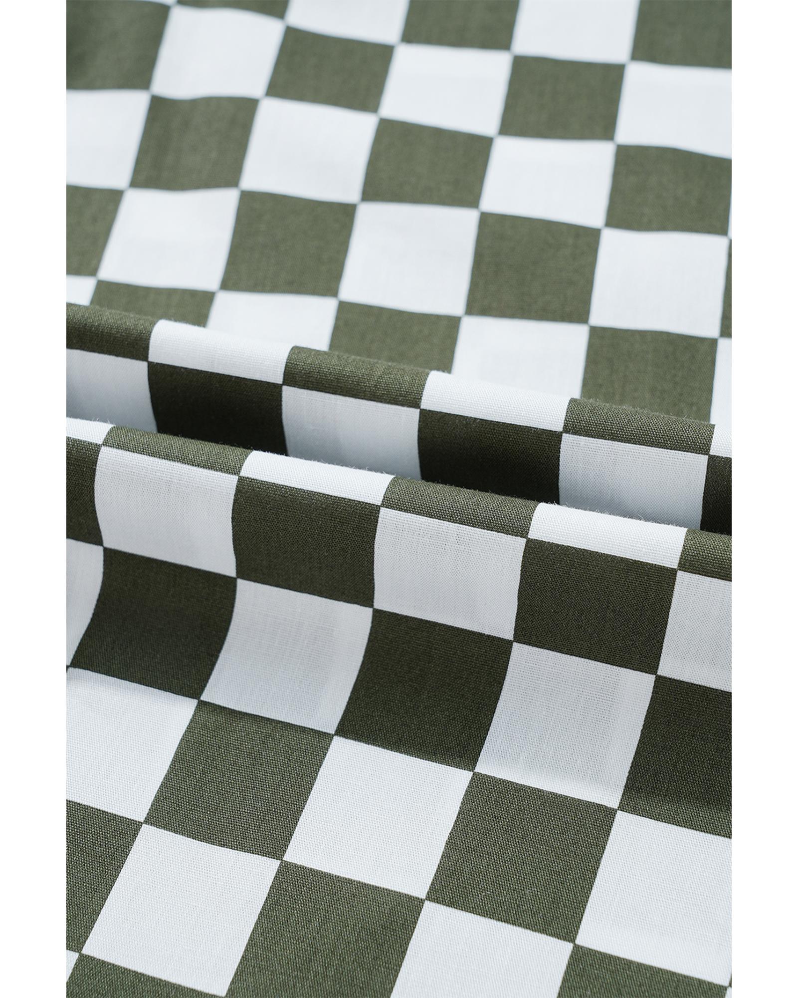 Green Checkerboard Printed Drop Shoulder Loose Casual Shirt – M