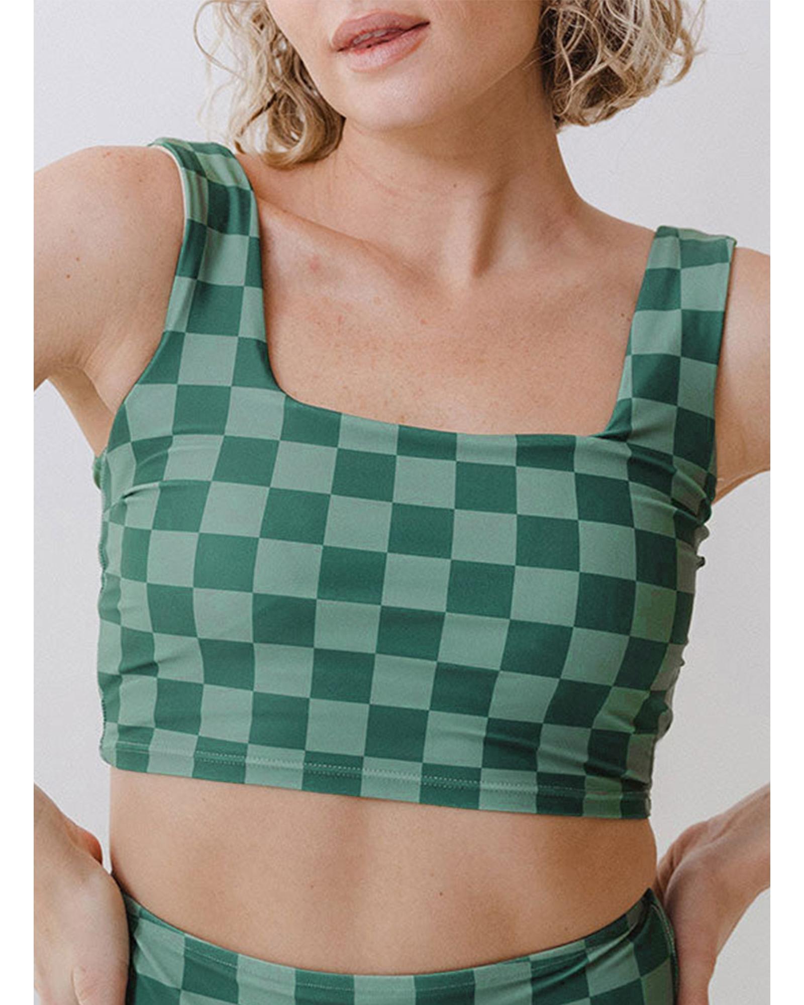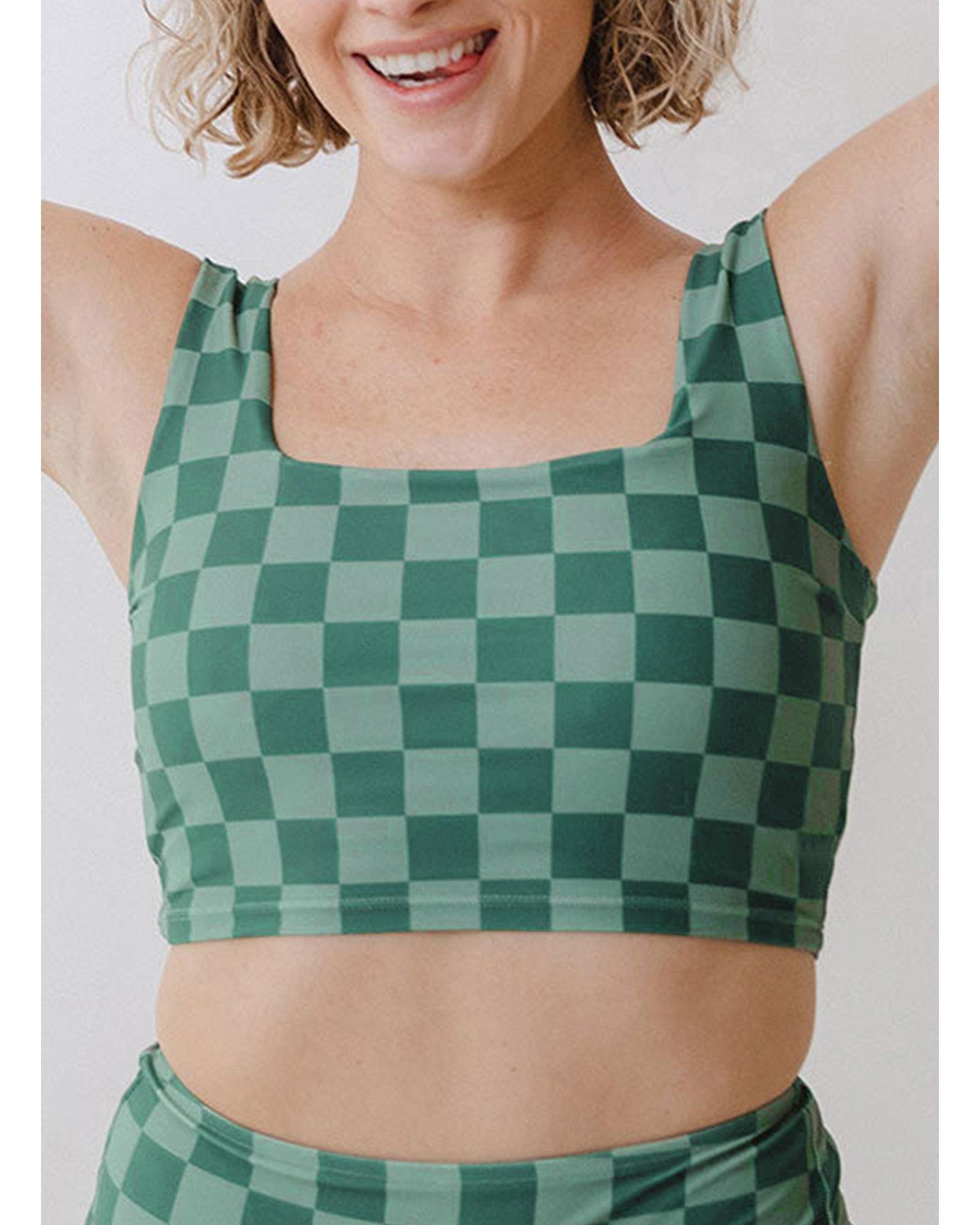 Green Checkered Print Square Neck Cropped Swim Top – 2XL