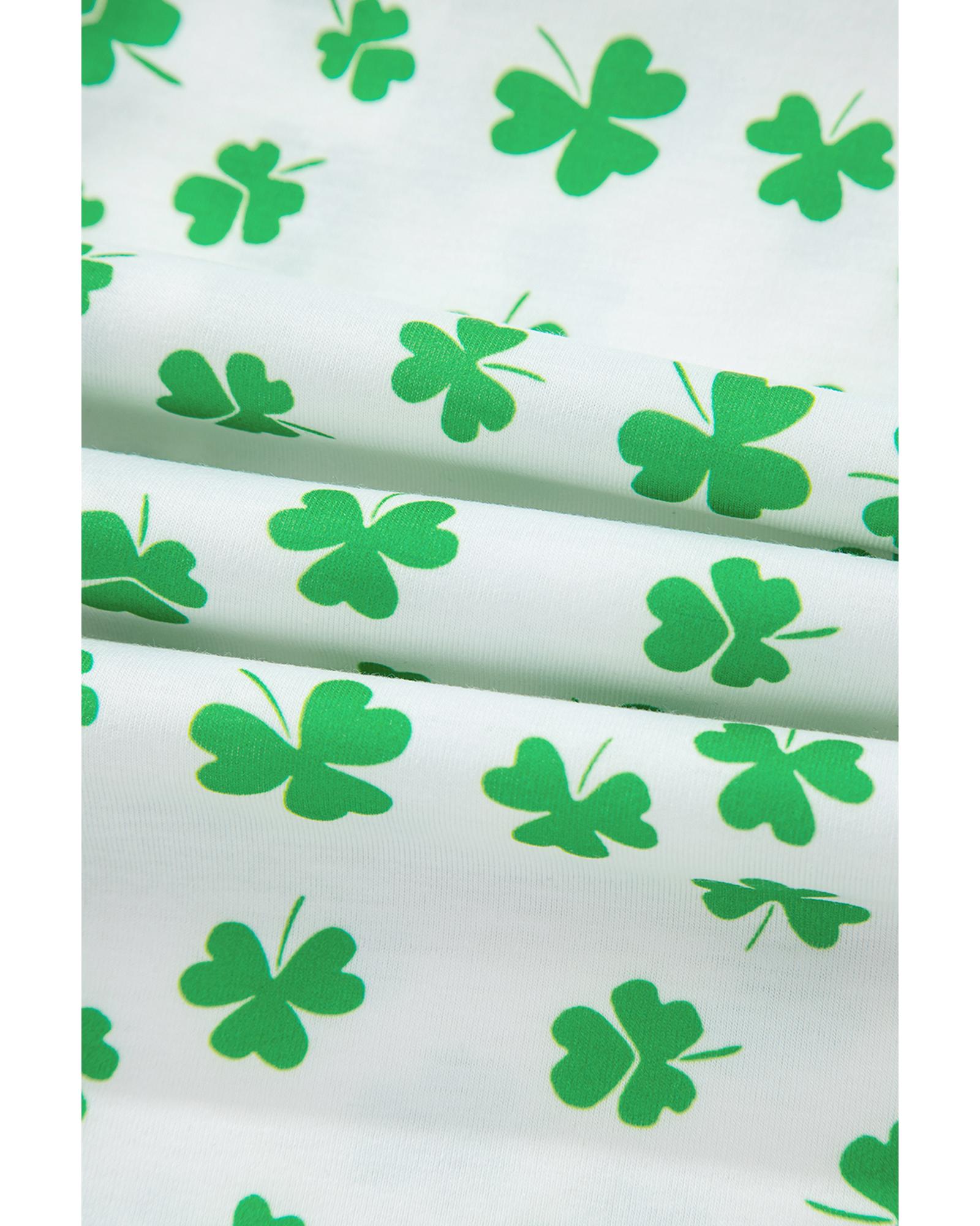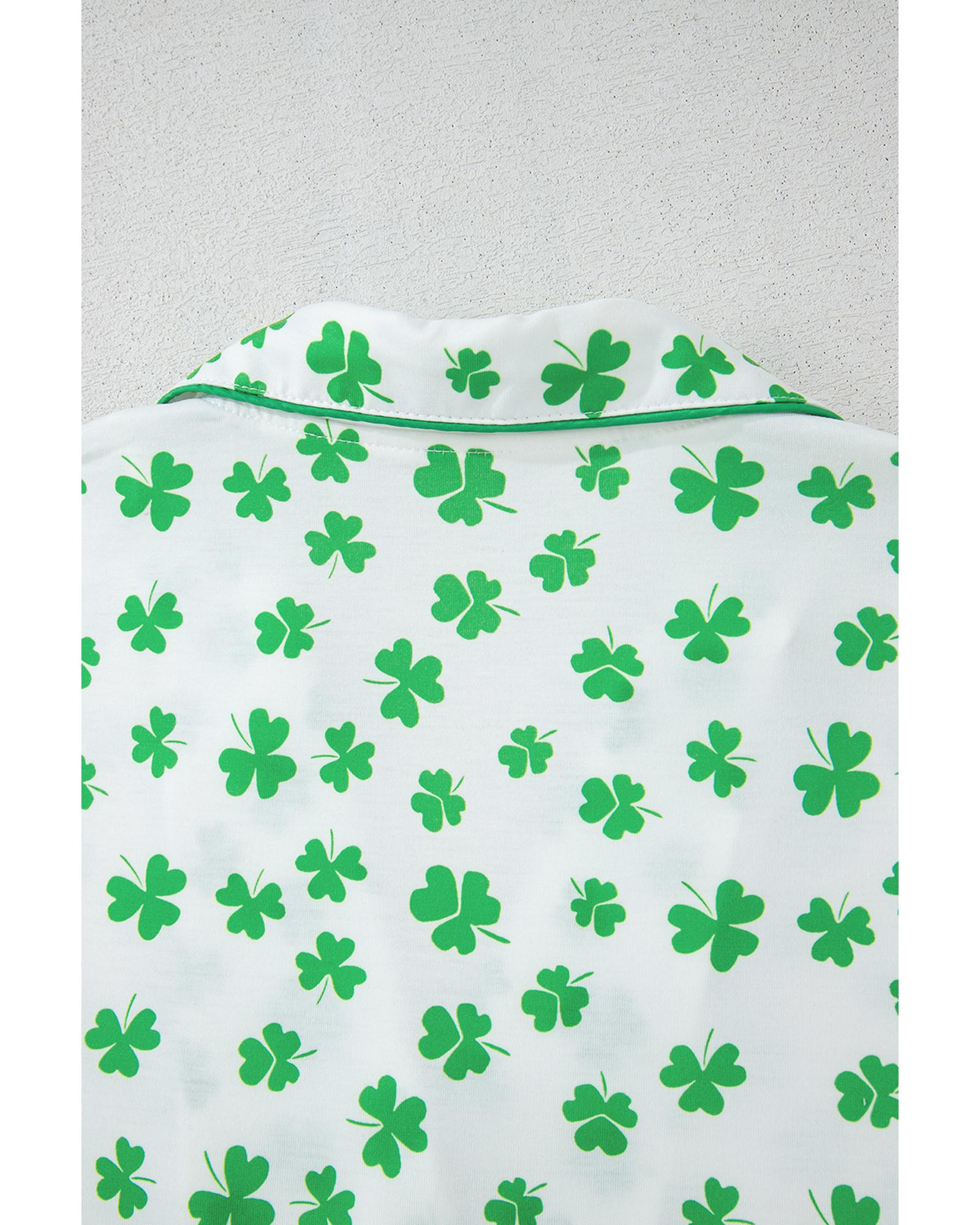 Green Clover Printed Short Sleeve and Ruffled Shorts Pajama Set – XL