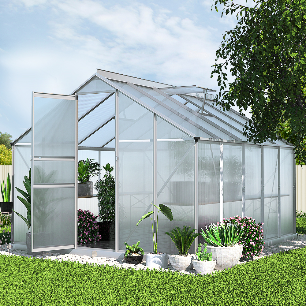 Elevate your gardening experience with the Green Fingers Aluminium Greenhouse. Order now and achieve your year-round gardening goals!