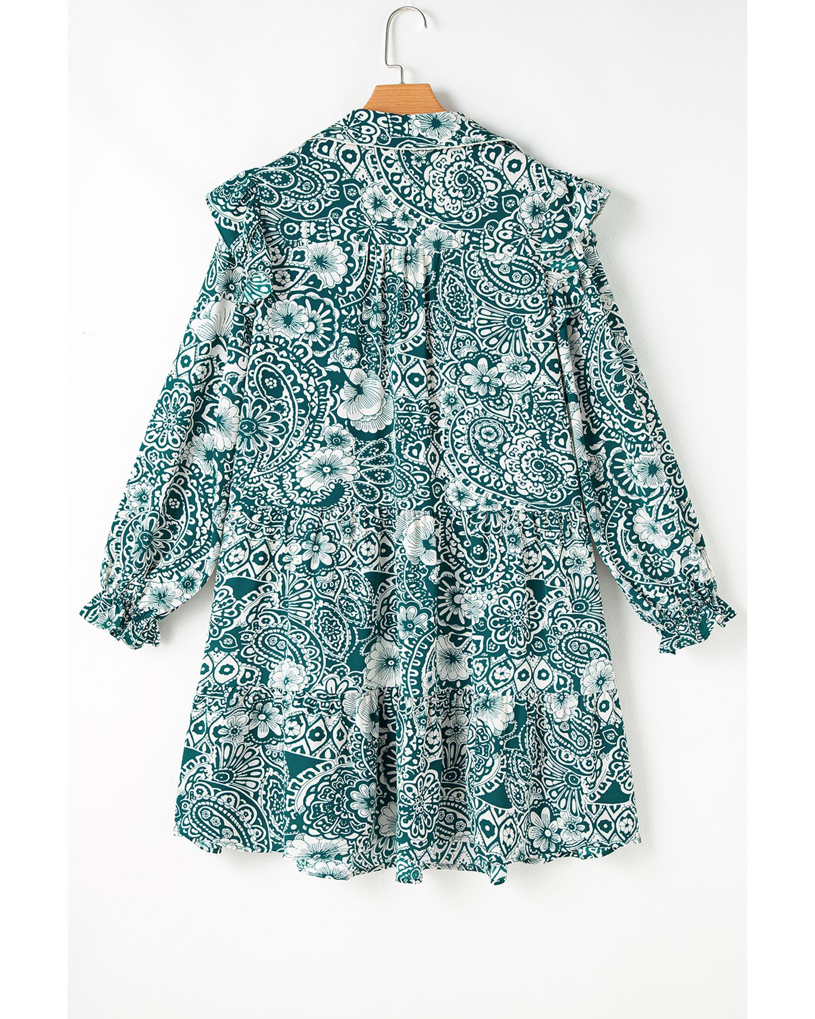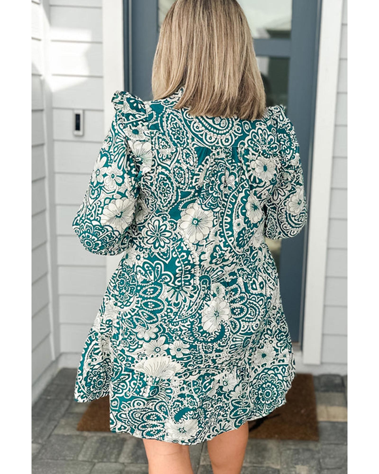 Green Floral Flounce Sleeve Split Neck Plus Size Dress – 2X
