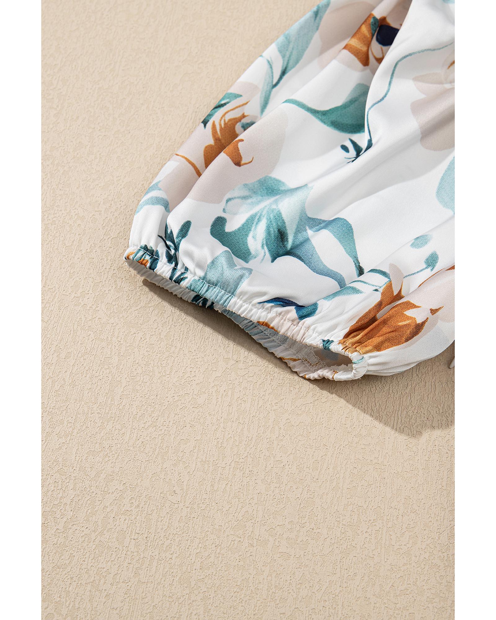 Green Floral Print Puff Sleeve V Neck Babydoll Blouse – XL