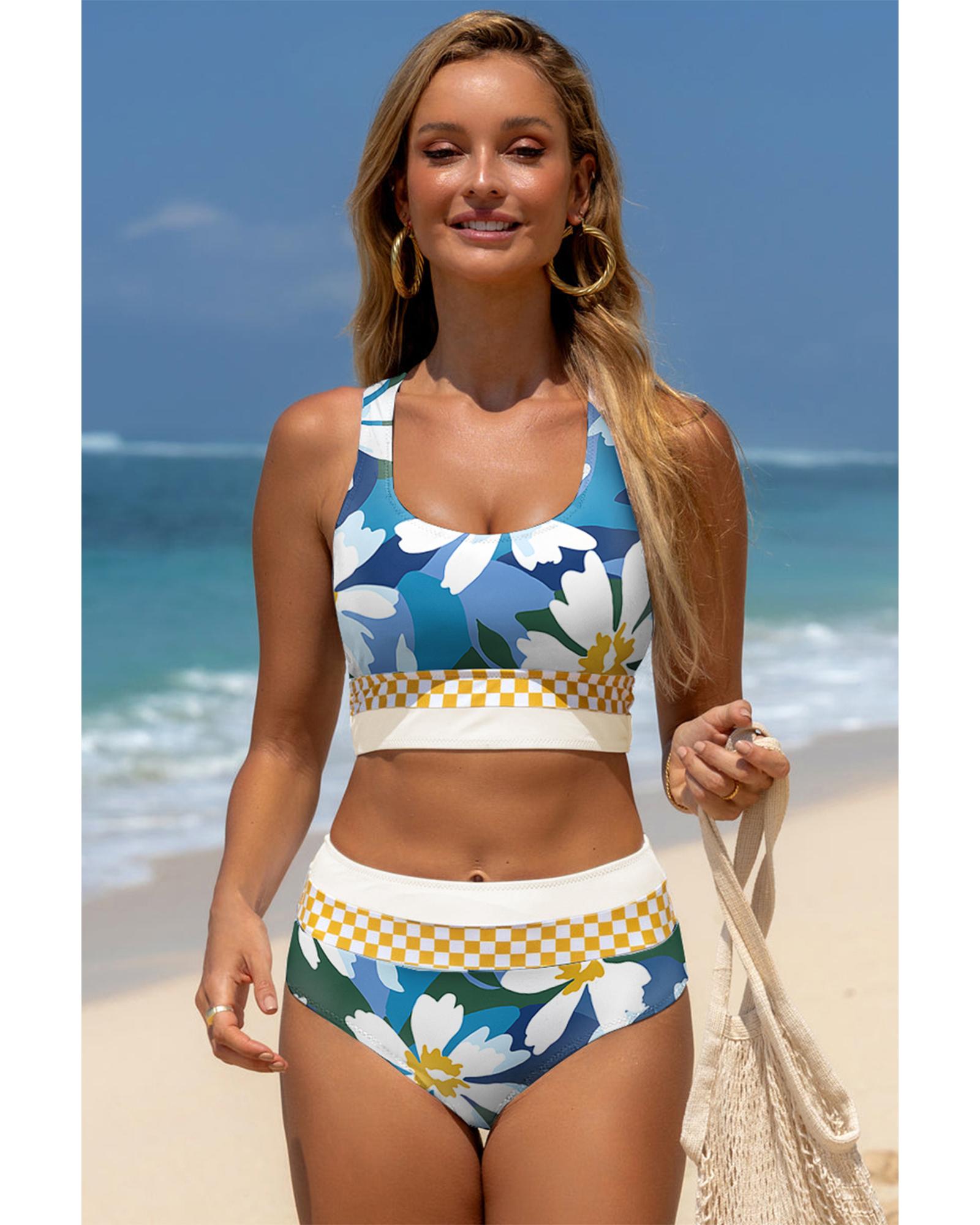 Green Floral Print Racerback Cutout High Waist 2pcs Bikini – L