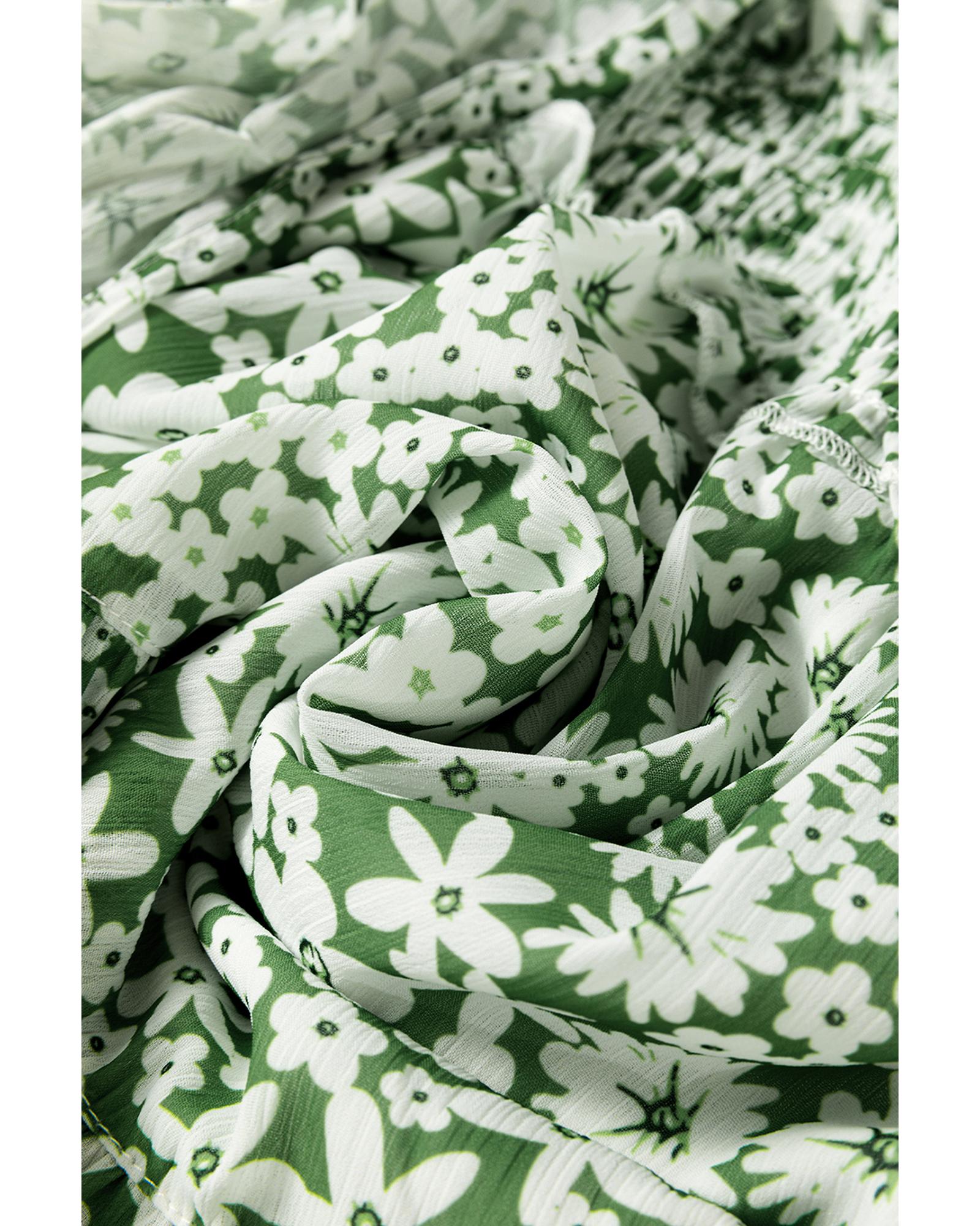 Green Floral Print Square Neck Shirred Waist Tiered Ruffled Mini Dress – XL