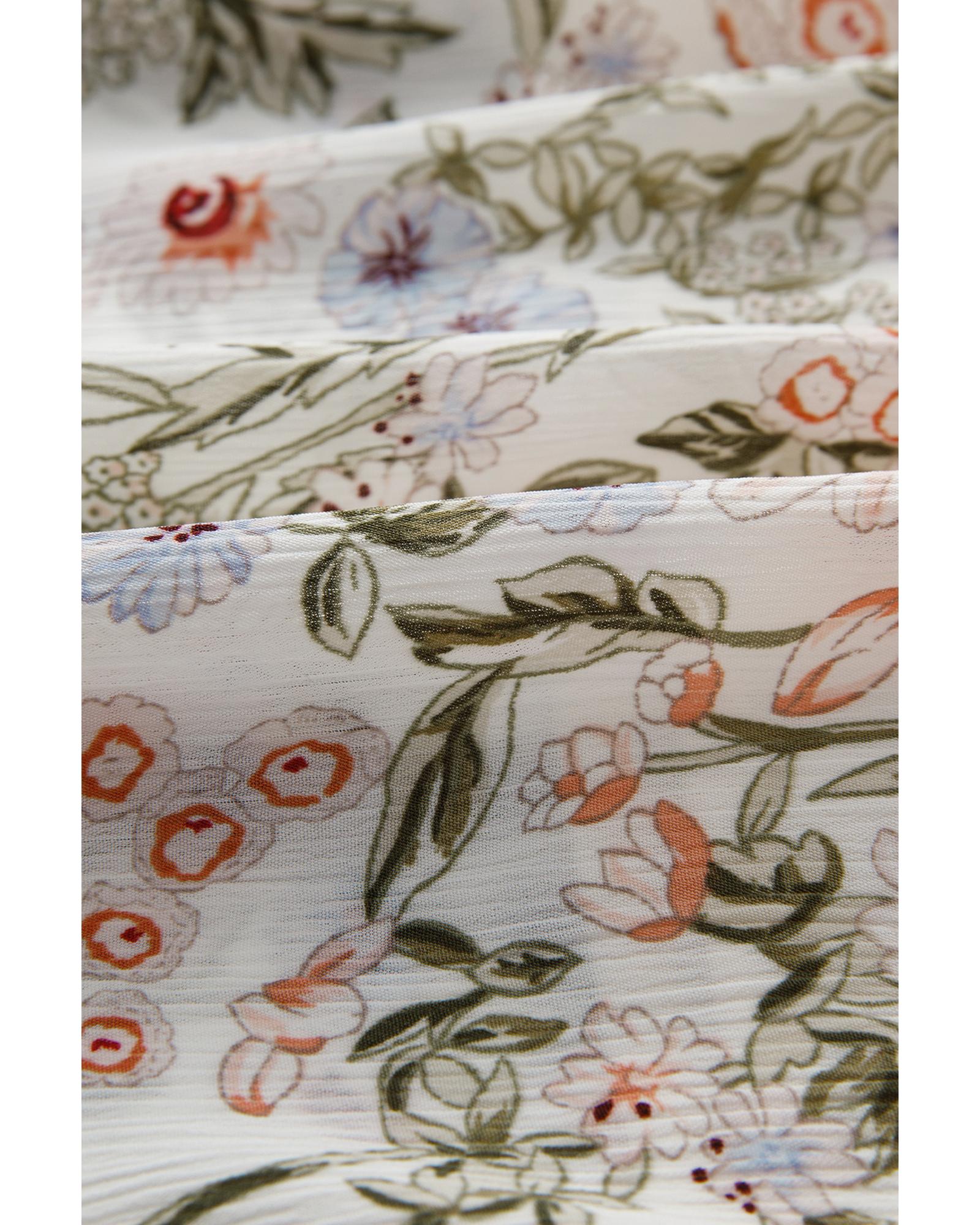 Green Floral Print Tiered Frilled Shirred Mock Neck Mini Dress – M