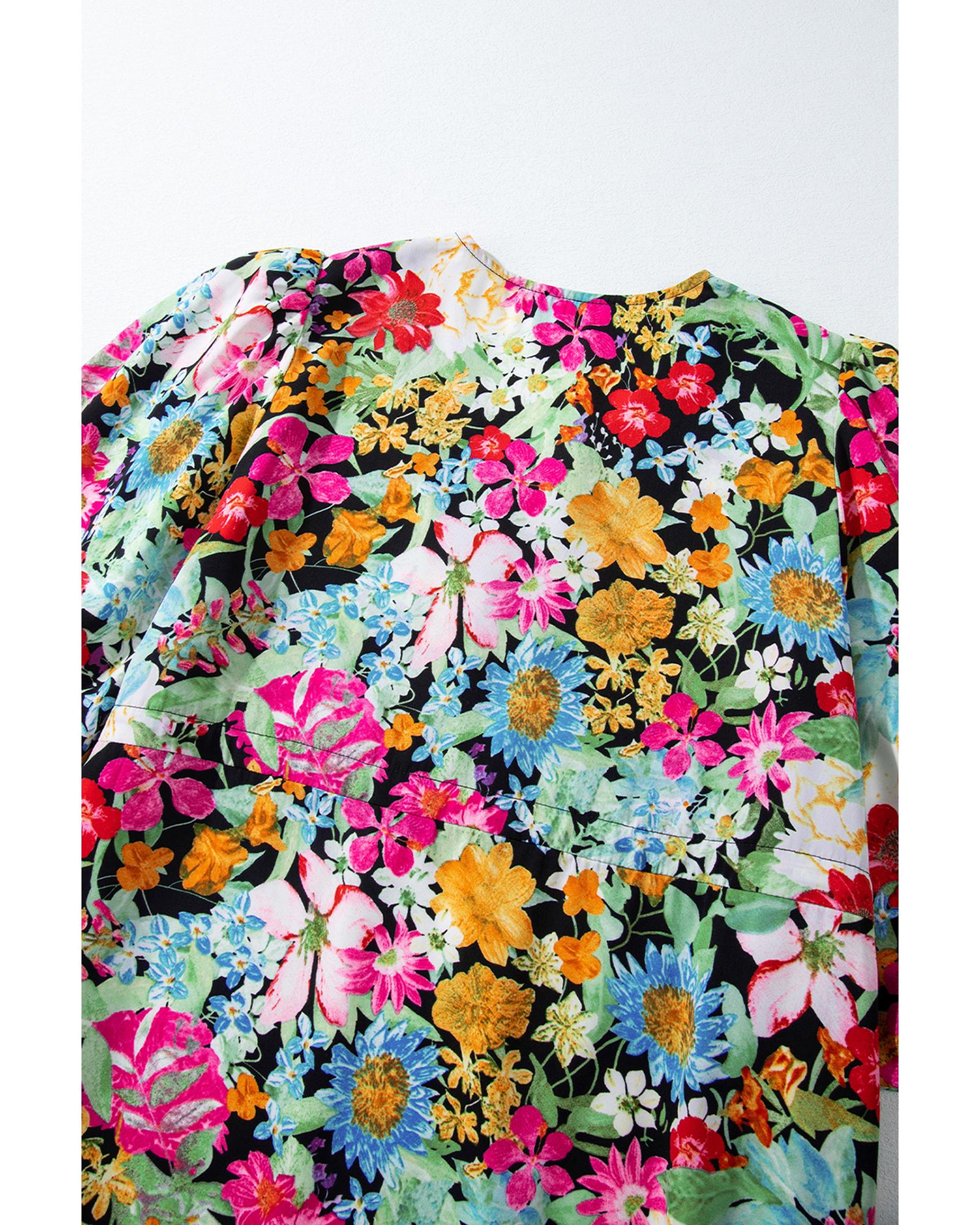 - Green floral puff sleeve dress