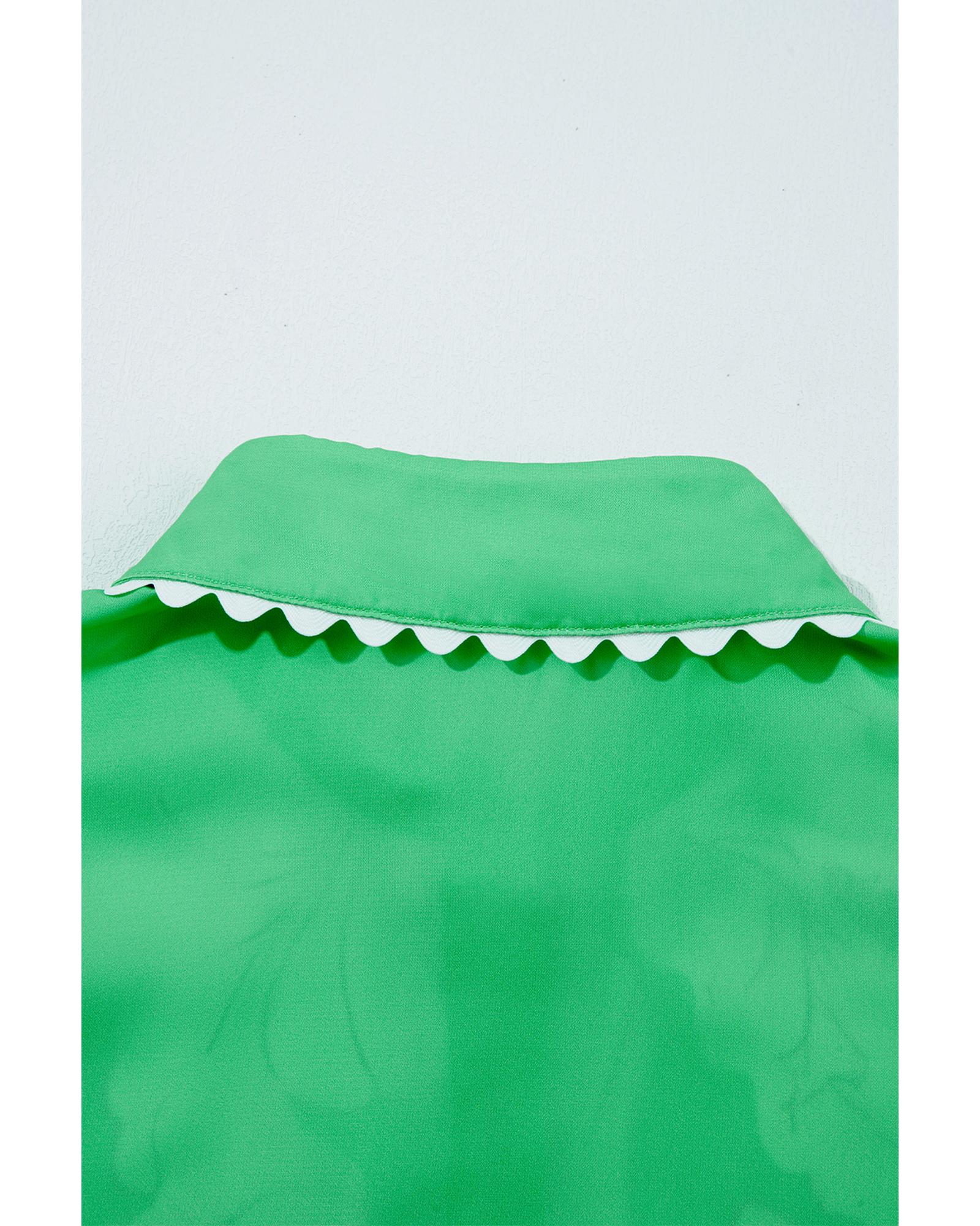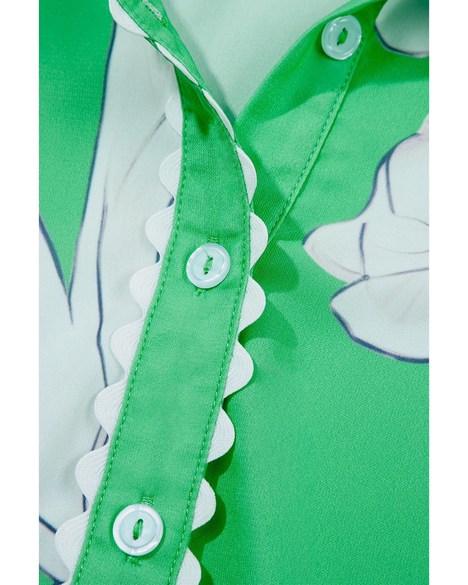 - Green Floral Ric Rac Edge Puff Sleeve Button Up Summer Shirt