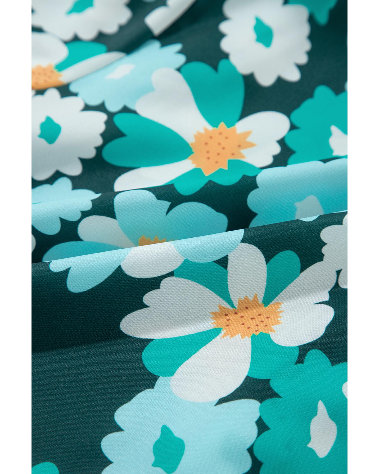 - Green floral tiered shirt dress