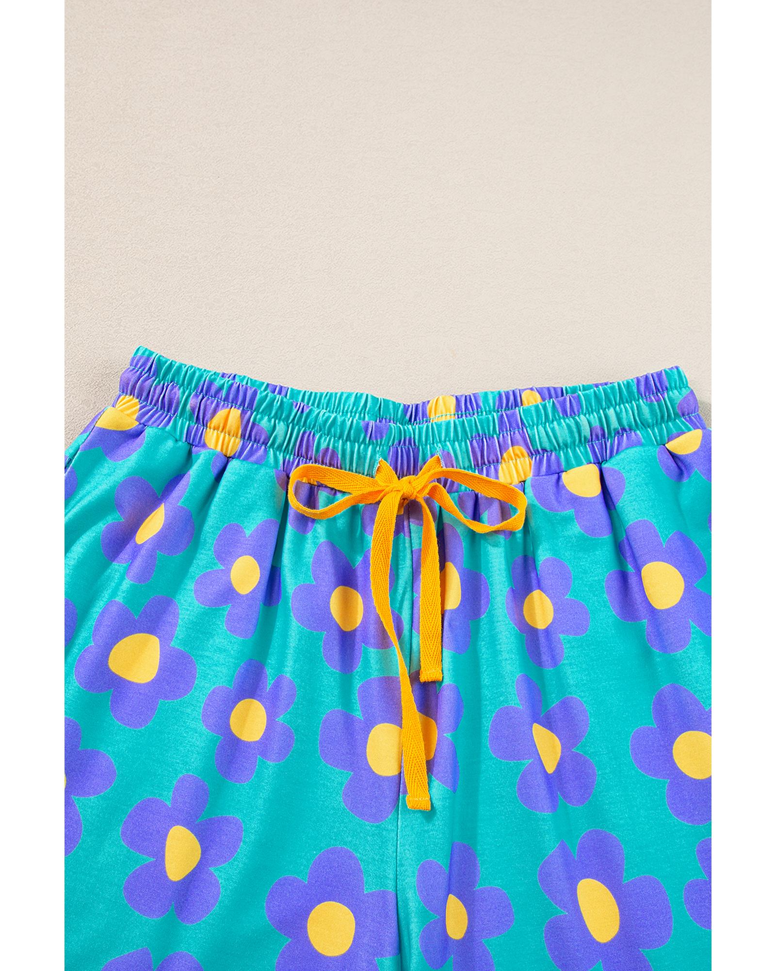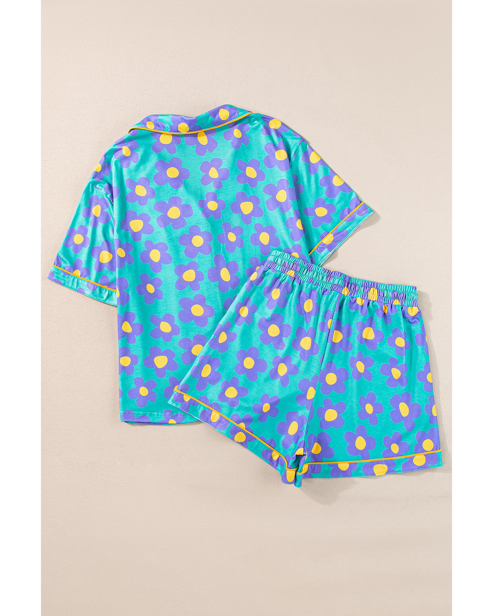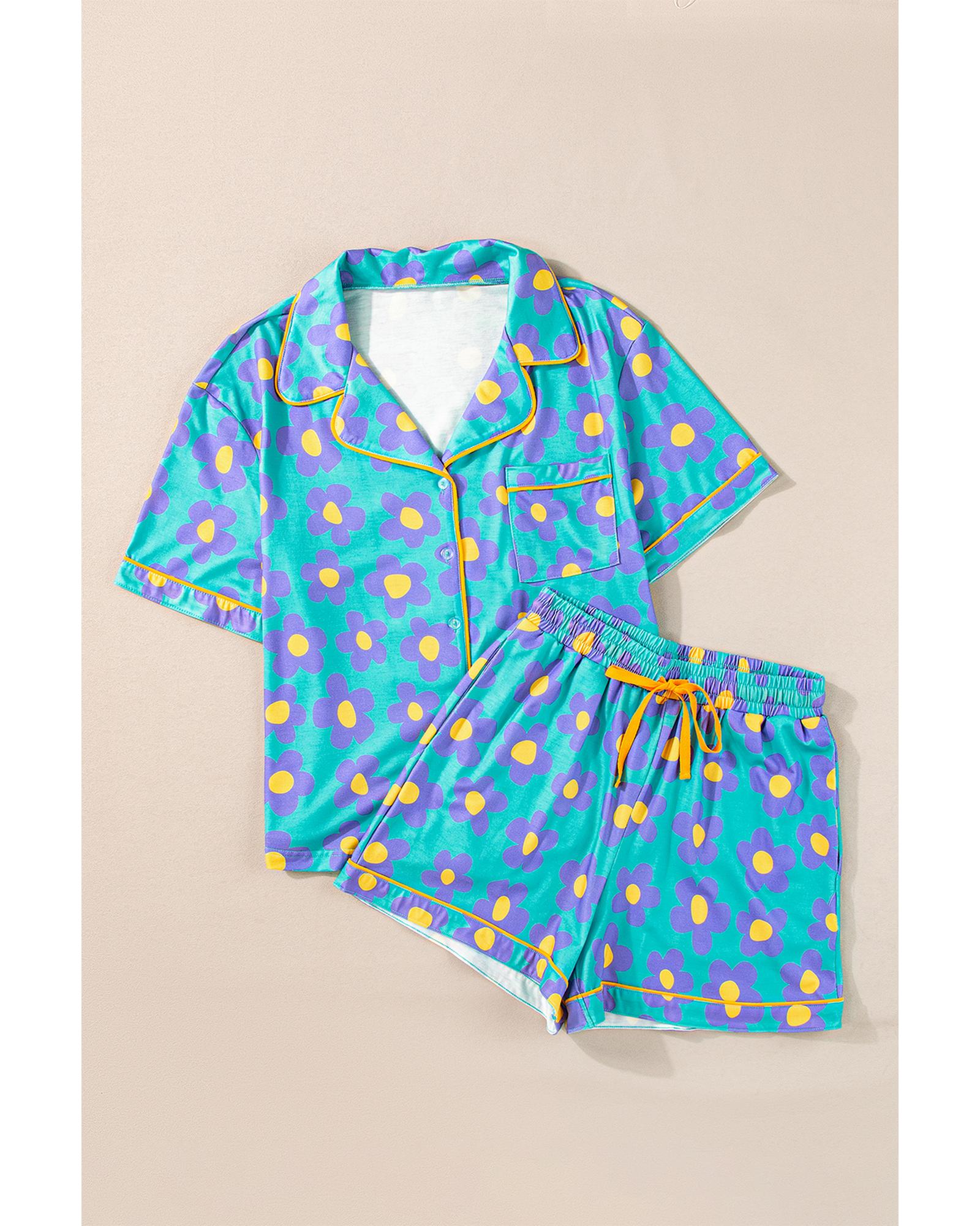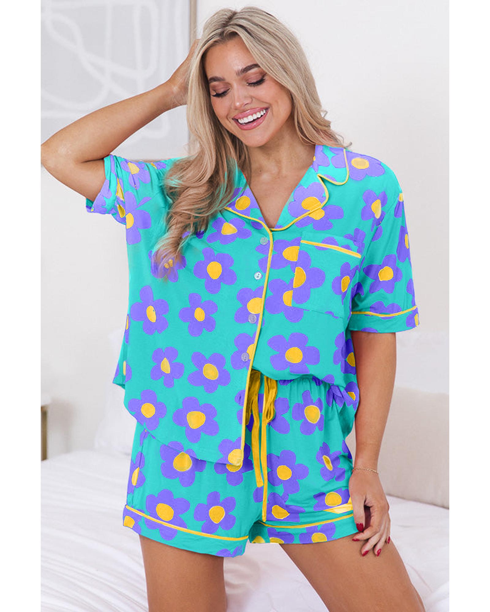 • Green flower print short sleeve pajama set