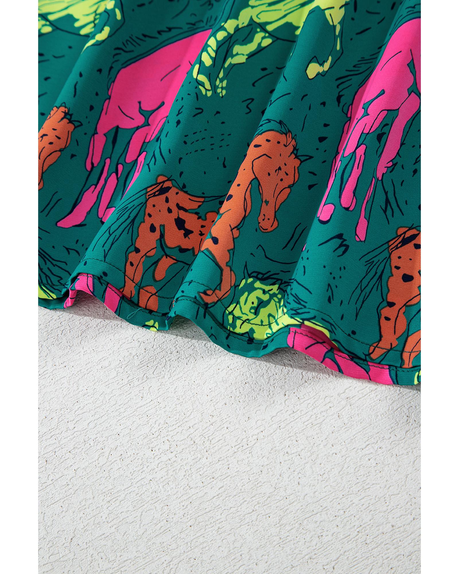 Green Horse Printed Long Sleeve Collared Buttoned Plus Size Midi Dress - 3X Original price was: $83.99.Current price is: $45.99.
