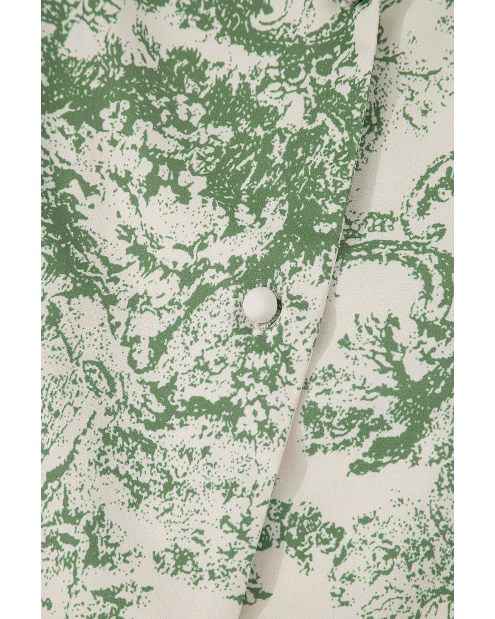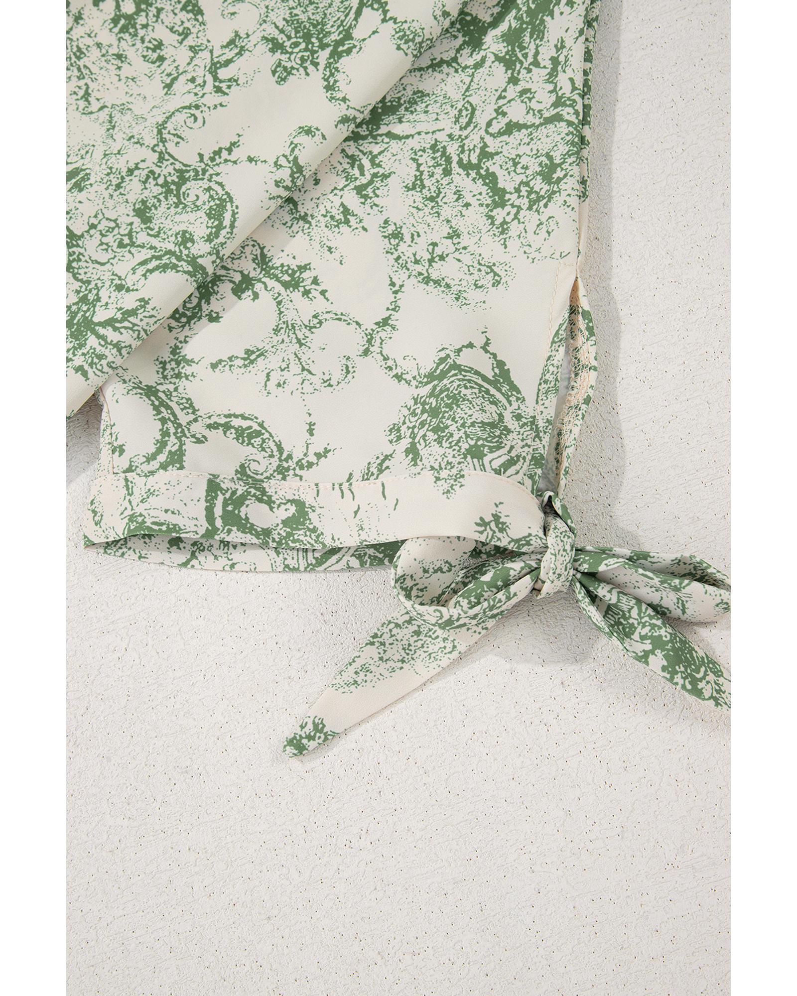 Green Landscape Print Tied 3/4 Sleeve Shirt with Sash – S