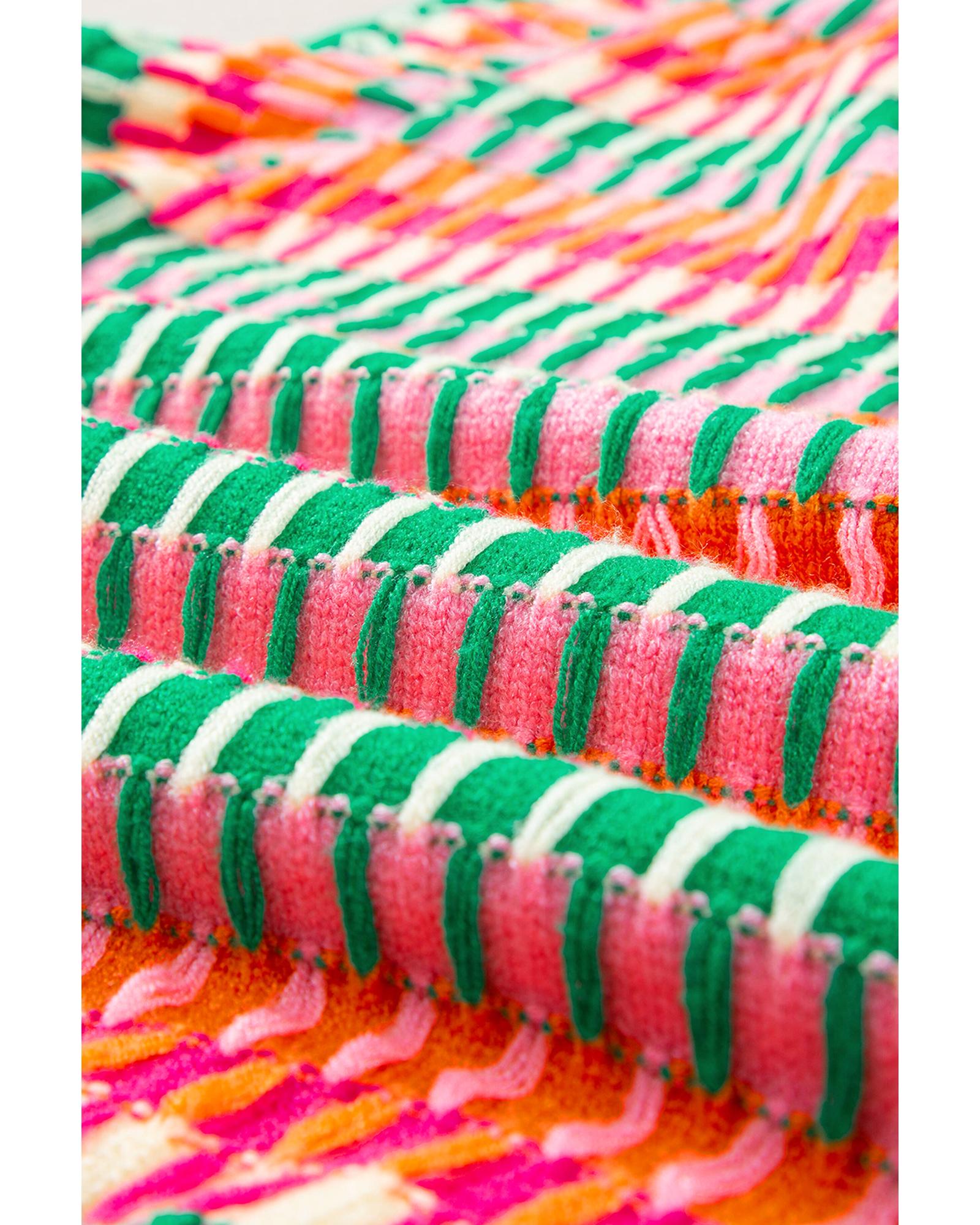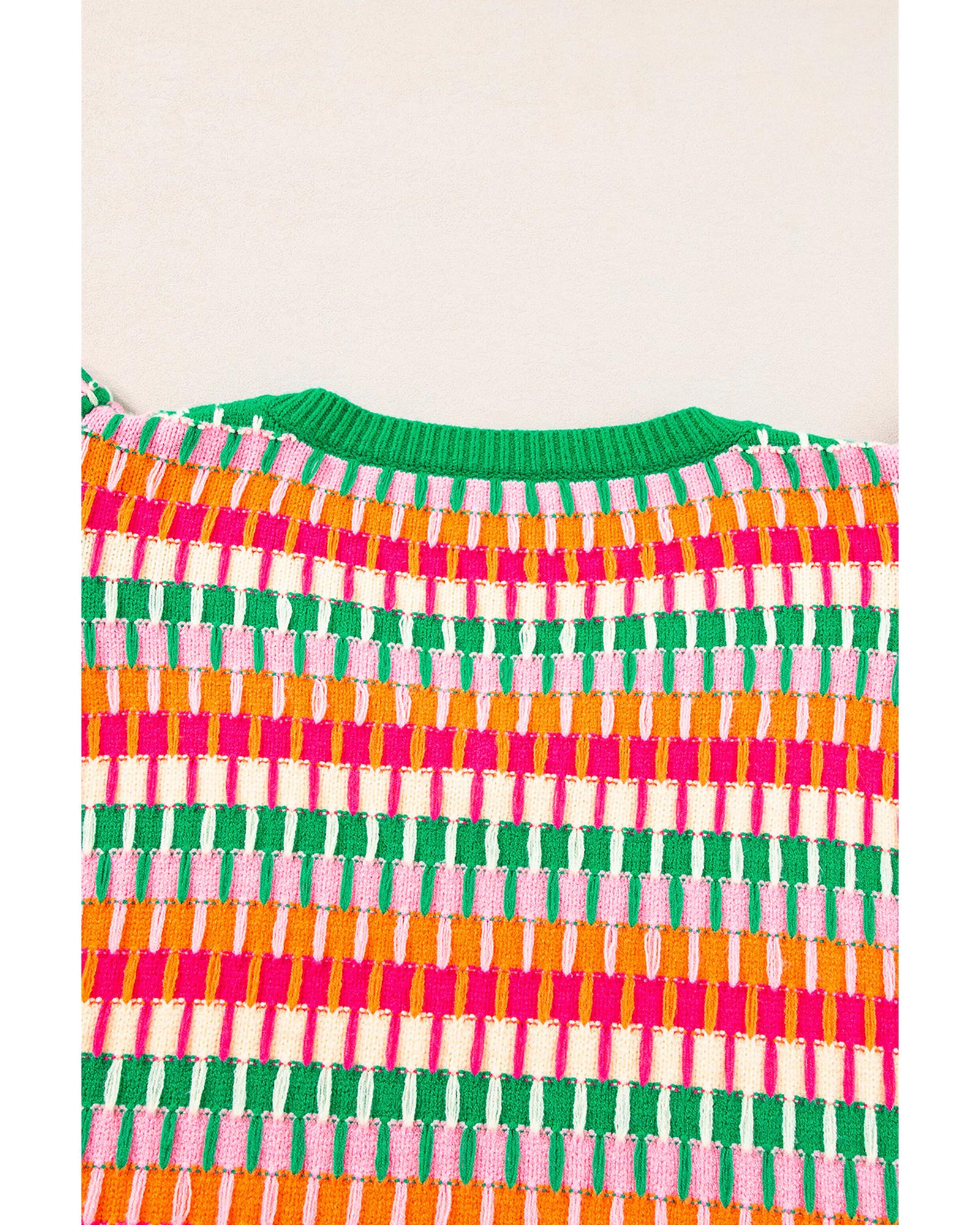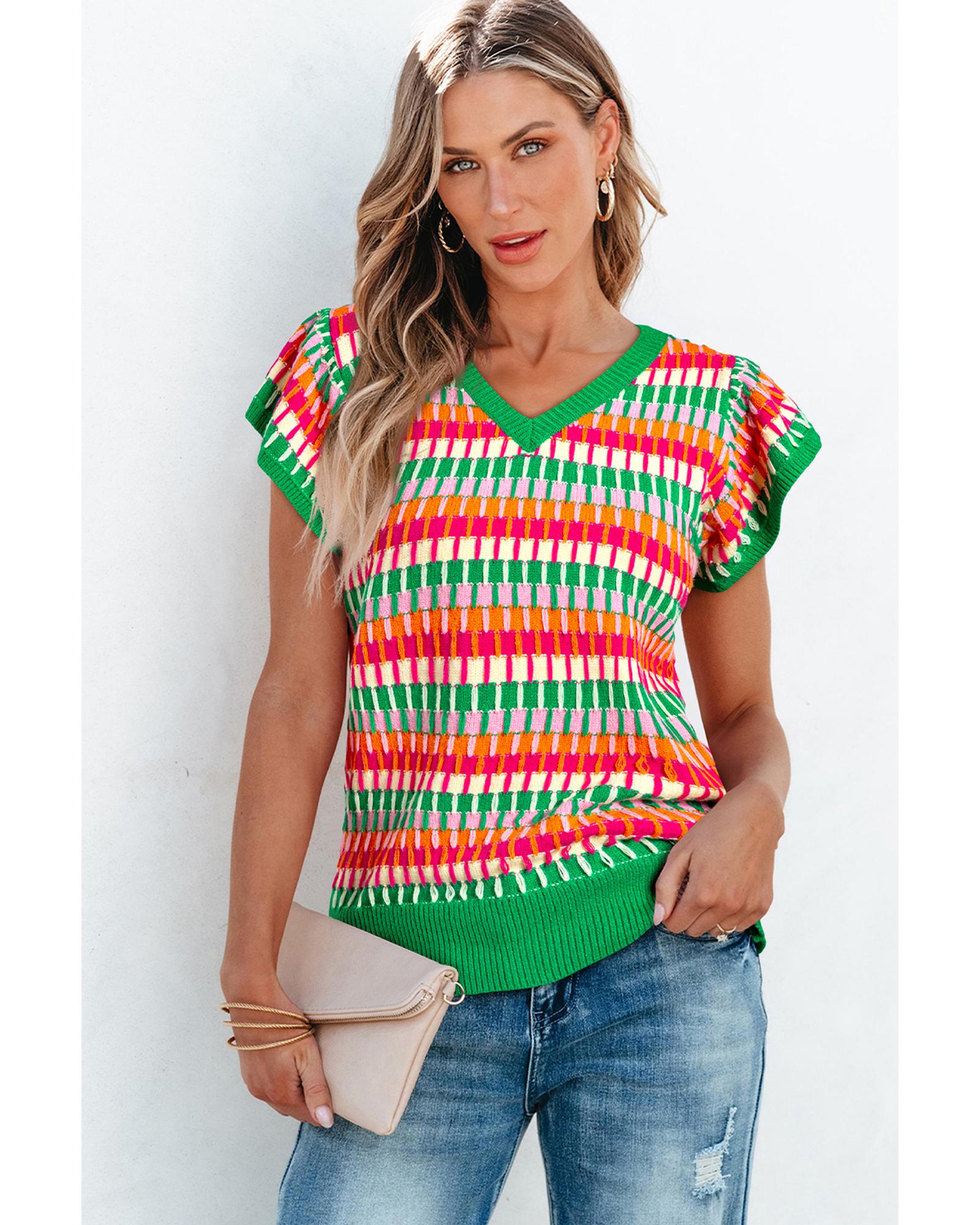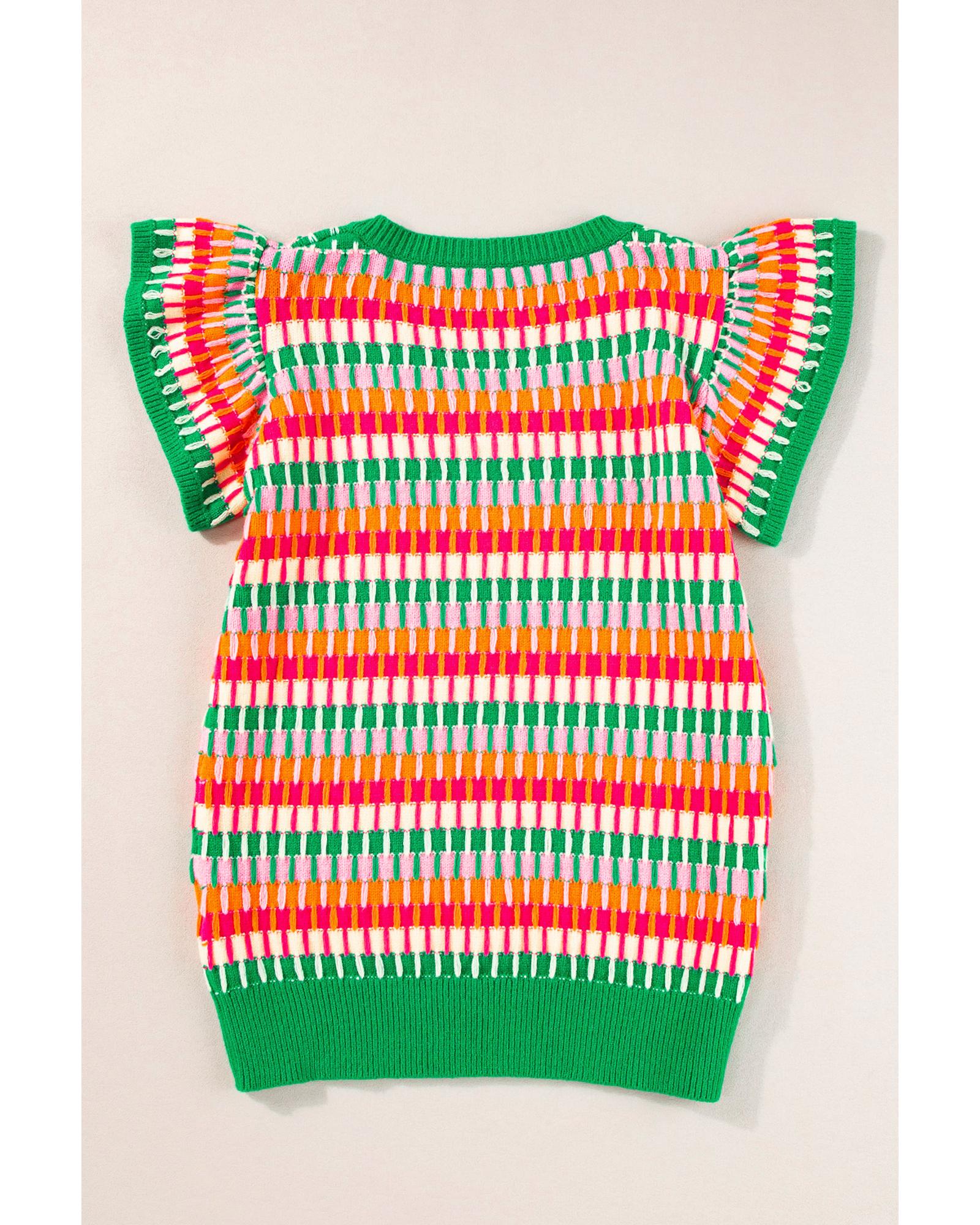 Green Multi Flutter Sleeve Knitted Sweater Top – L
