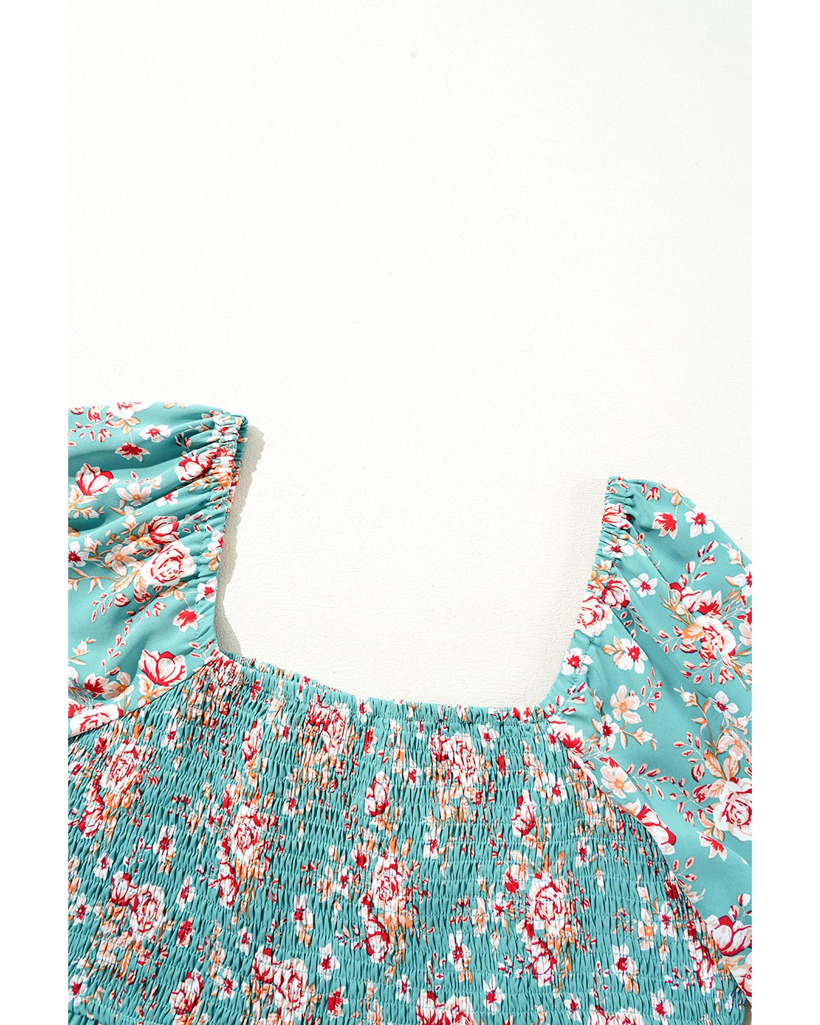 • Green Plus Size Floral Print Square Neck Smocked Maxi Dress