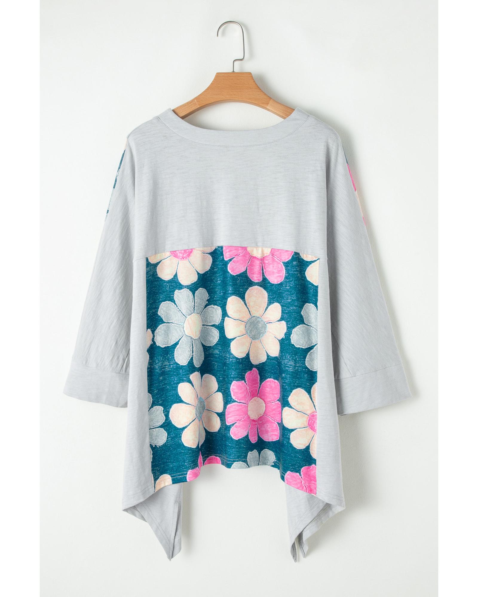 Green Plus Size Flower Patchwork Exposed Seam High Low Top – 1X