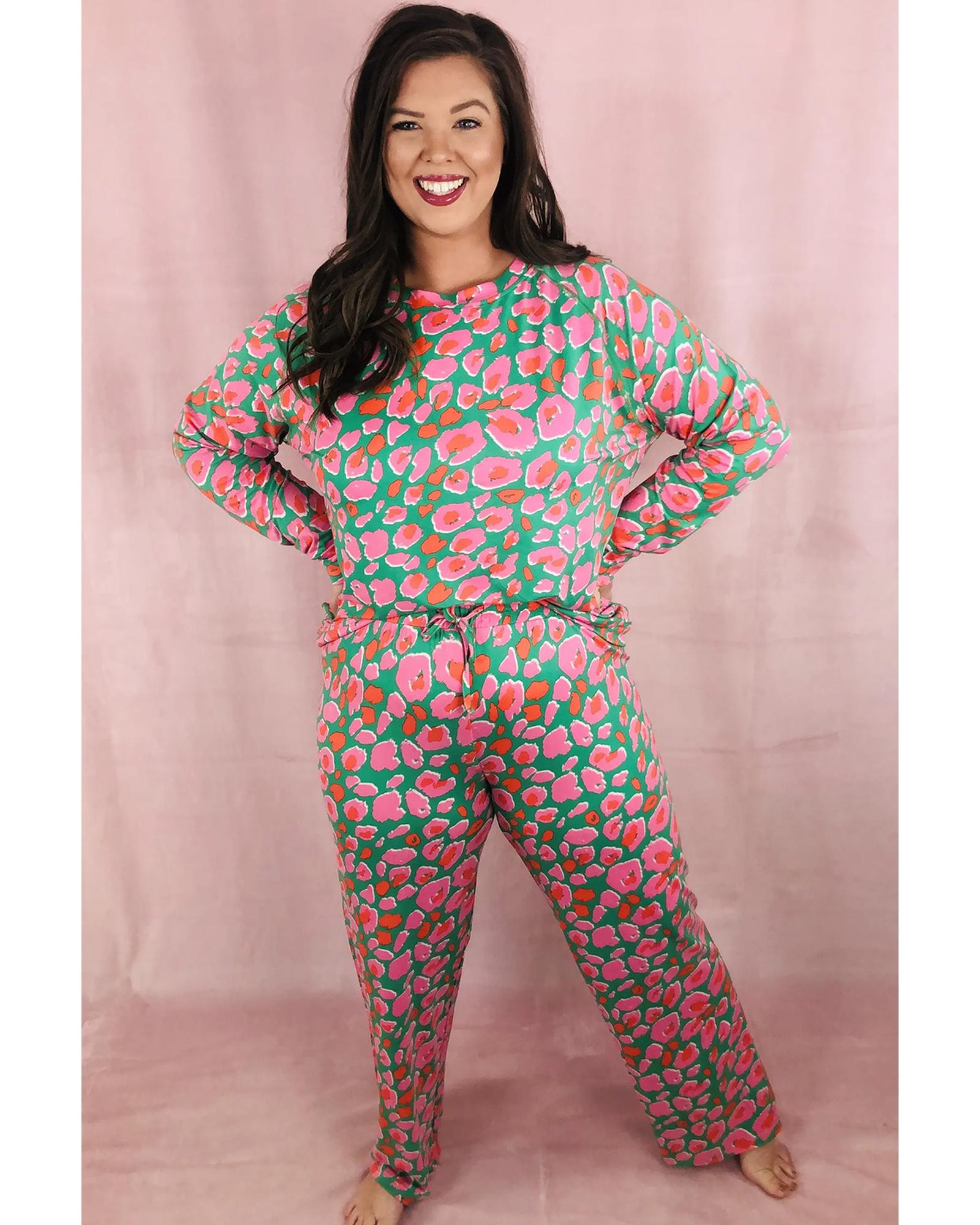 Green Plus Size Printed Long Sleeve and Pants Lounge Set – 2X