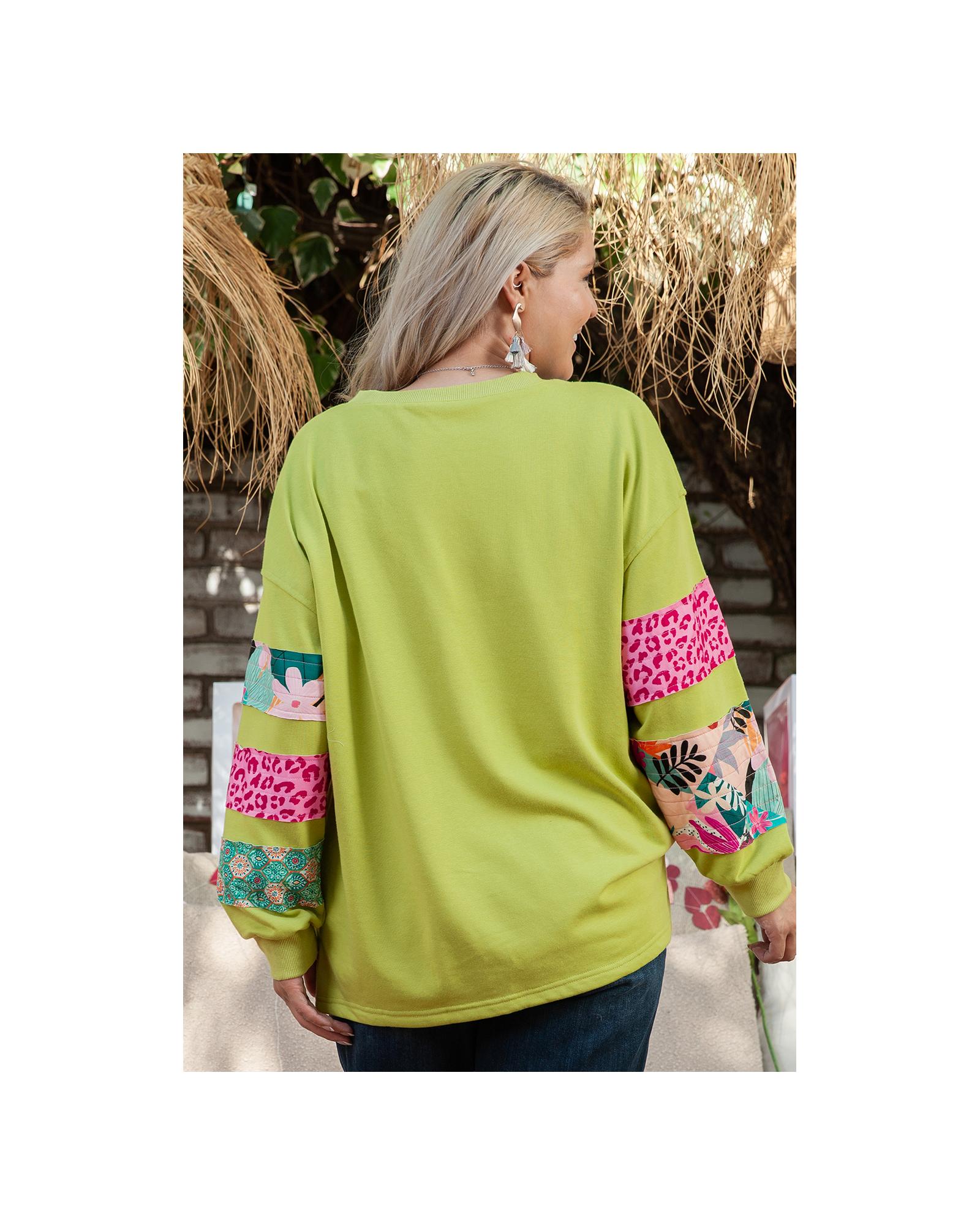 Green Plus Size Printed Patchwork Sleeve Split Sweatshirt – 2X
