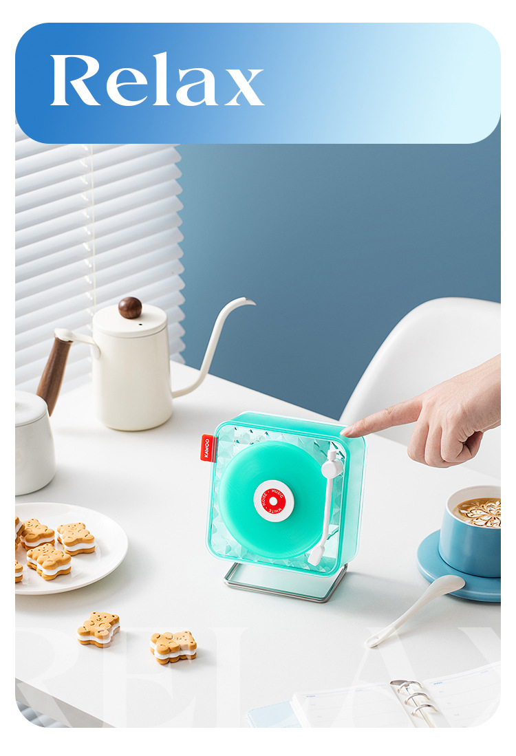 The eye-catching transparent body houses a stylized vinyl record element that glows with customizable light. Perfect as a desktop companion, bedside feature, or a unique gift, the Ice Candy speaker adds a touch of playful nostalgia and cool ambiance to any space.