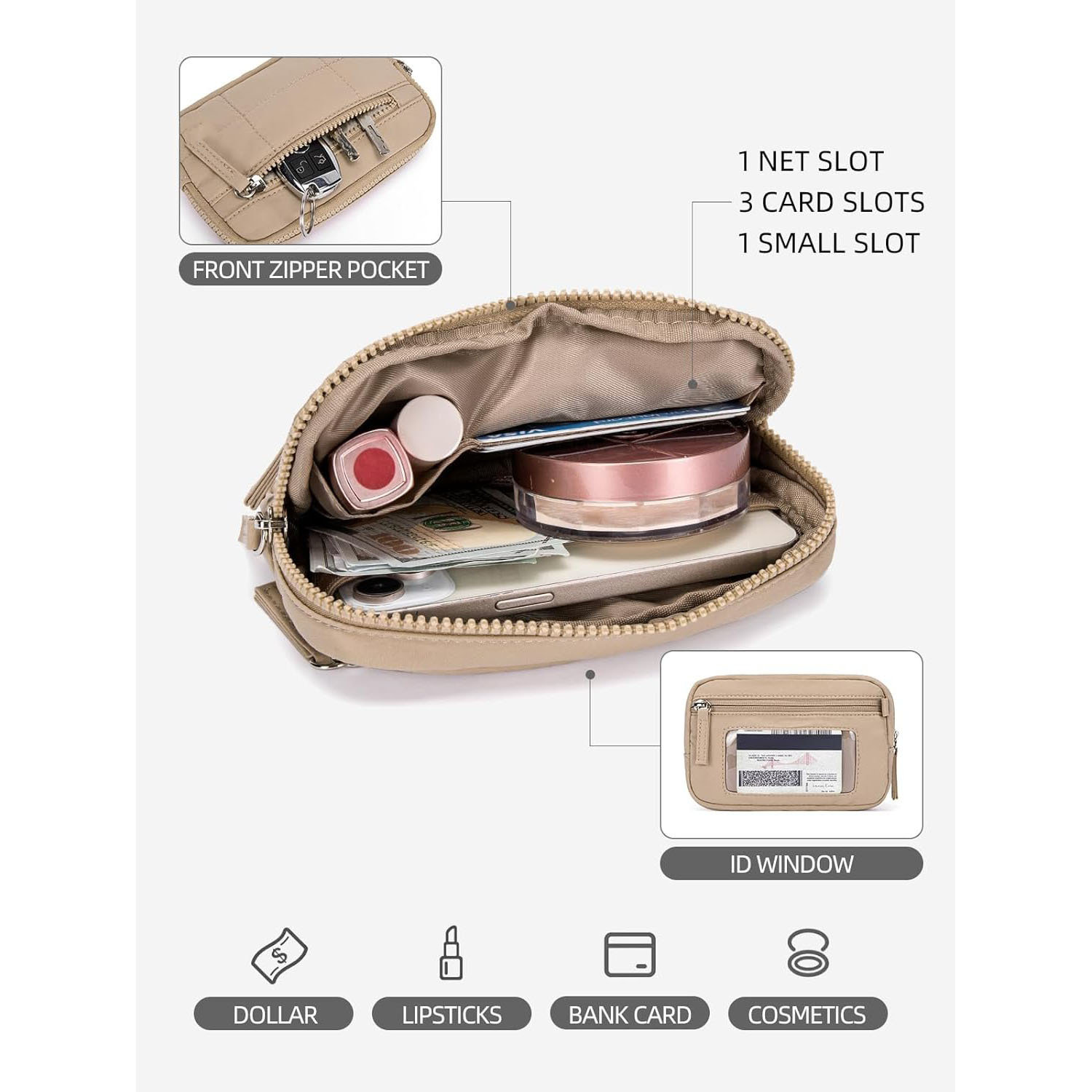 • Convenient Exterior Pockets: Features a zippered front pocket with a subtle quilted grid pattern for items like keys or lip balm, plus a clear ID window on the back for easy access without removing your ID.
