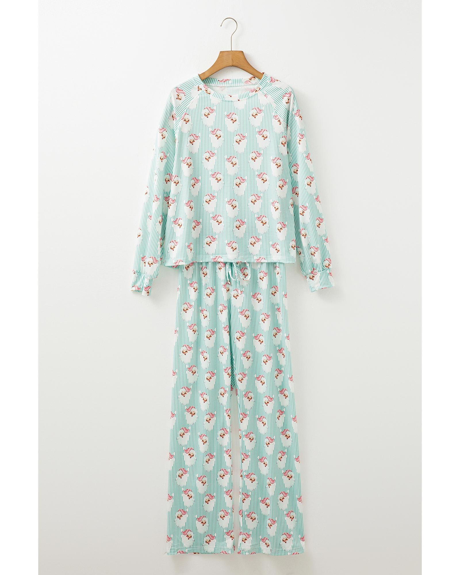 Green Santa Claus Striped Print Loose Fit Two Piece Lounge Set – S