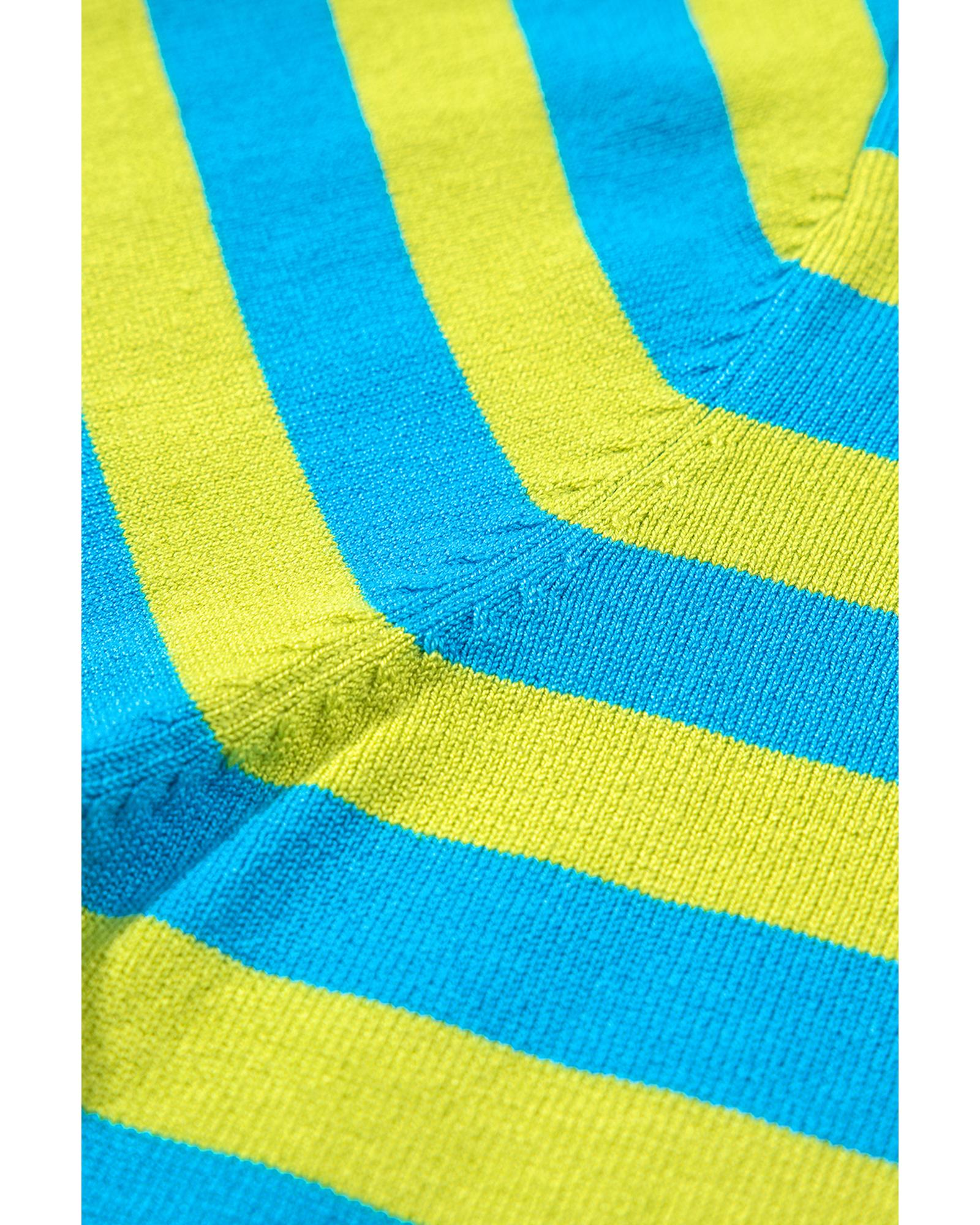 Green Stripe Crew Neck Drop Shoulder Casual Sweater – S