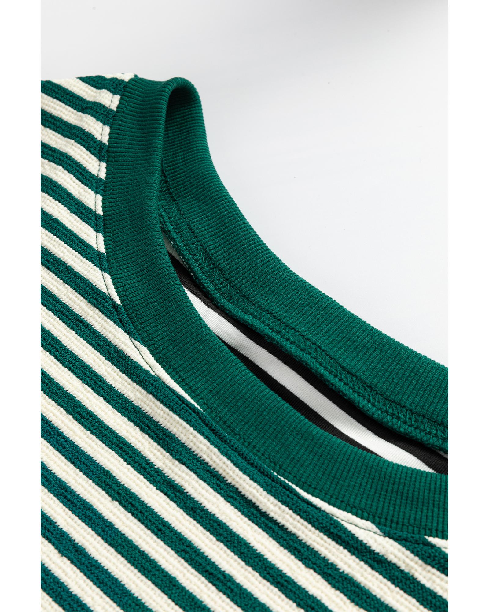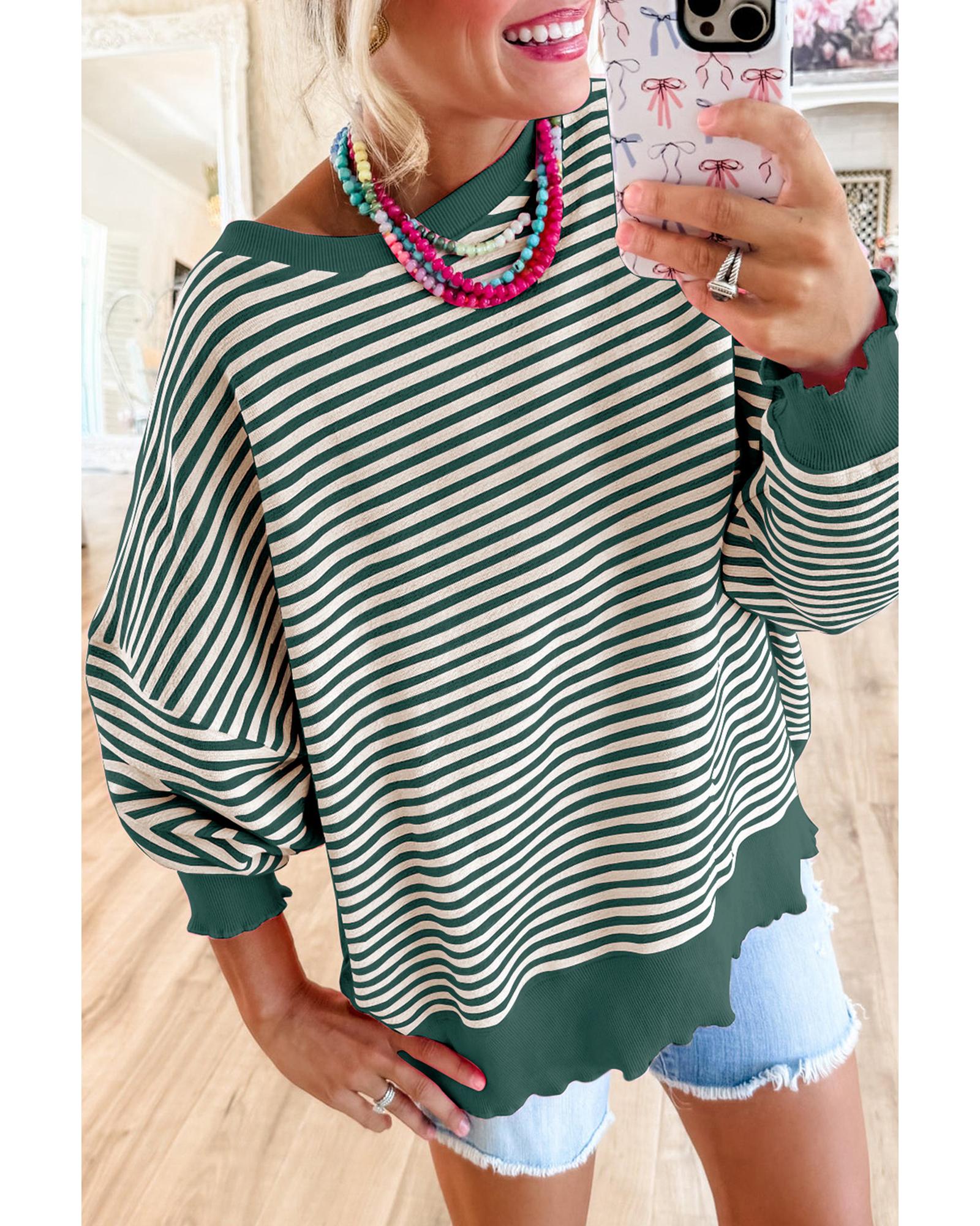 - Green Stripe Loose Drop Shoulder Long Sleeve Top
