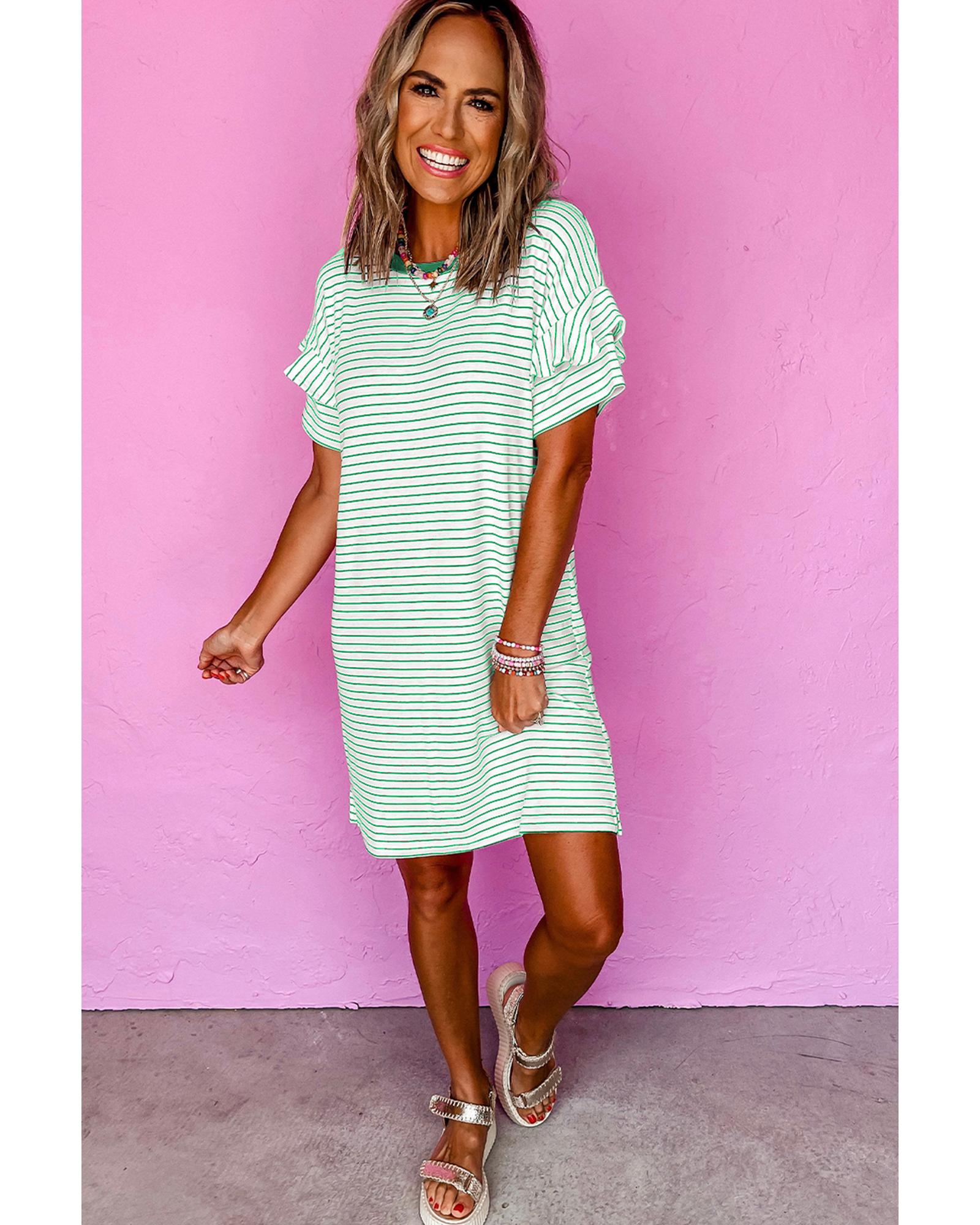 - Green stripe mini dress with t