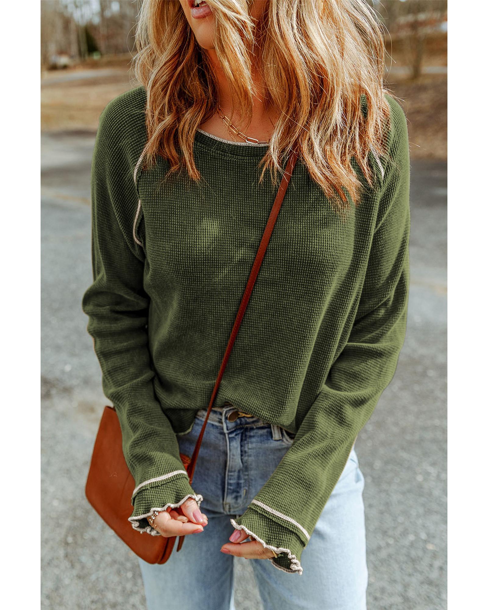 Green Textured Round Neck Long Sleeve Top – 2XL