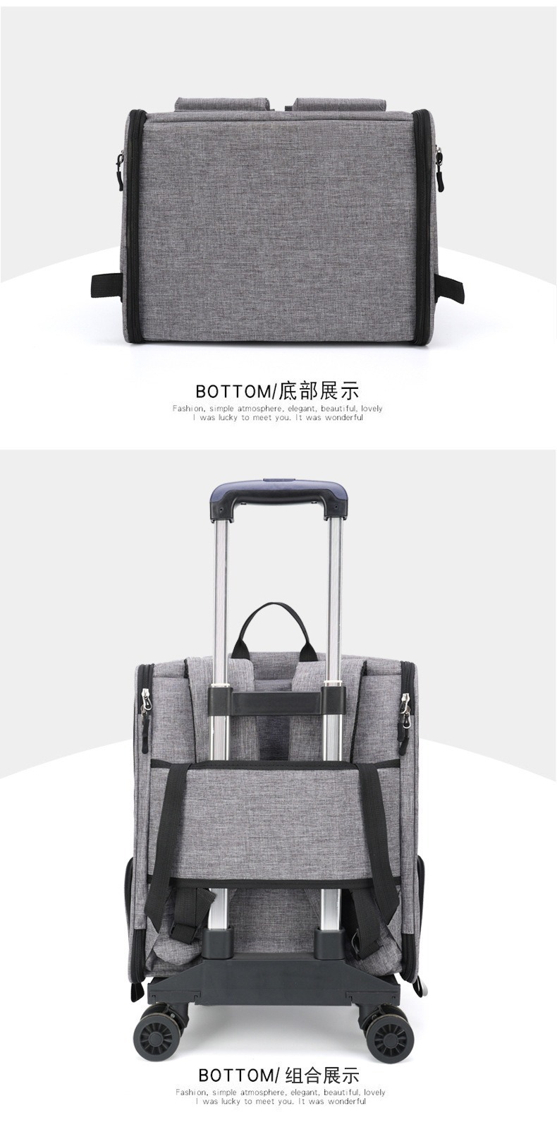 Grey 3-in-1 Pet Carrier: Rolling Backpack with Collapsible Design
