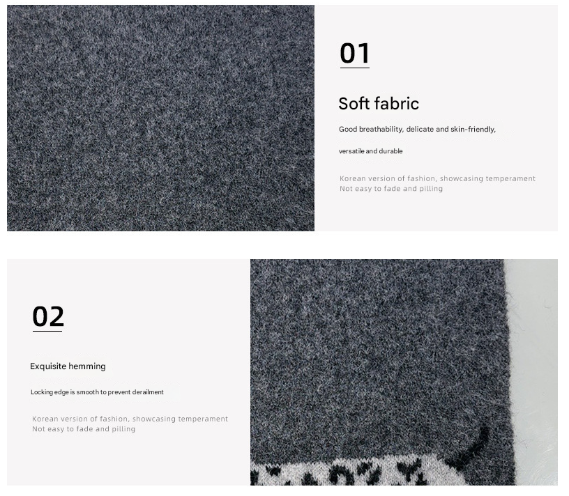 Grey Cute Korean-Style Wool Scarf with Dog Design – Unisex Knitted Winter Neck Wrap