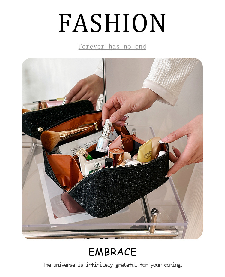 - Elegant Design: The shimmering glitter fabric adds a touch of glamour to your everyday routine, making it a perfect accessory for your beauty collection.