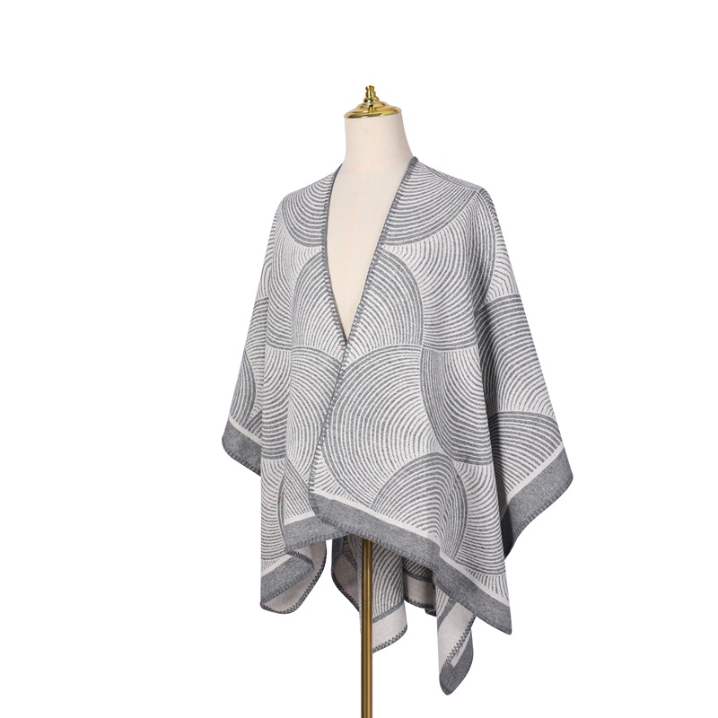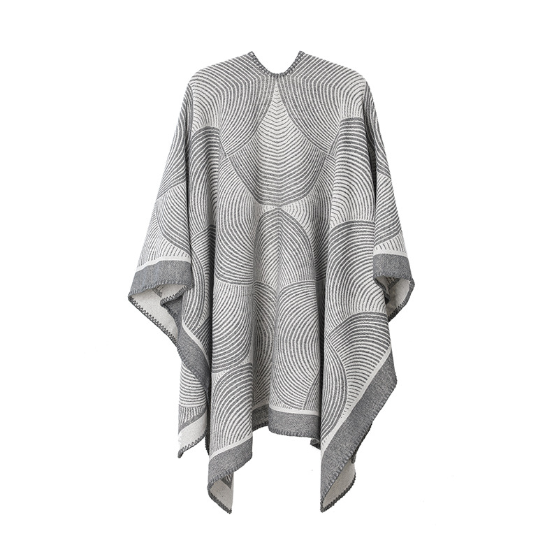 Grey Geometric Print Cape – Cozy Knit Poncho for Women (165x130cm)