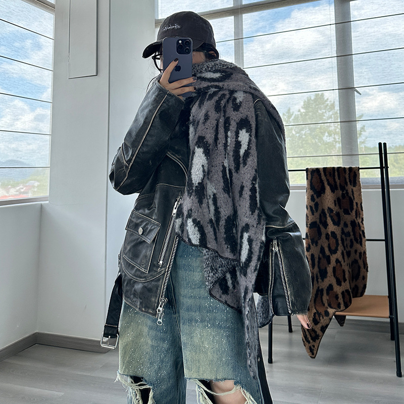 Grey Leopard Luxurious Thick Faux Cashmere Knitted Shawl – Versatile 55 x 210 cm Winter Scarf