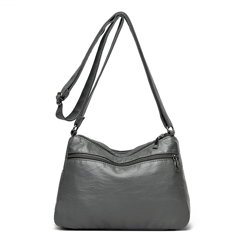 Grey Women’s Soft Washed PU Leather Crossbody Bag – Multi-Pocket Casual Shoulder Purse for Everyday Organization