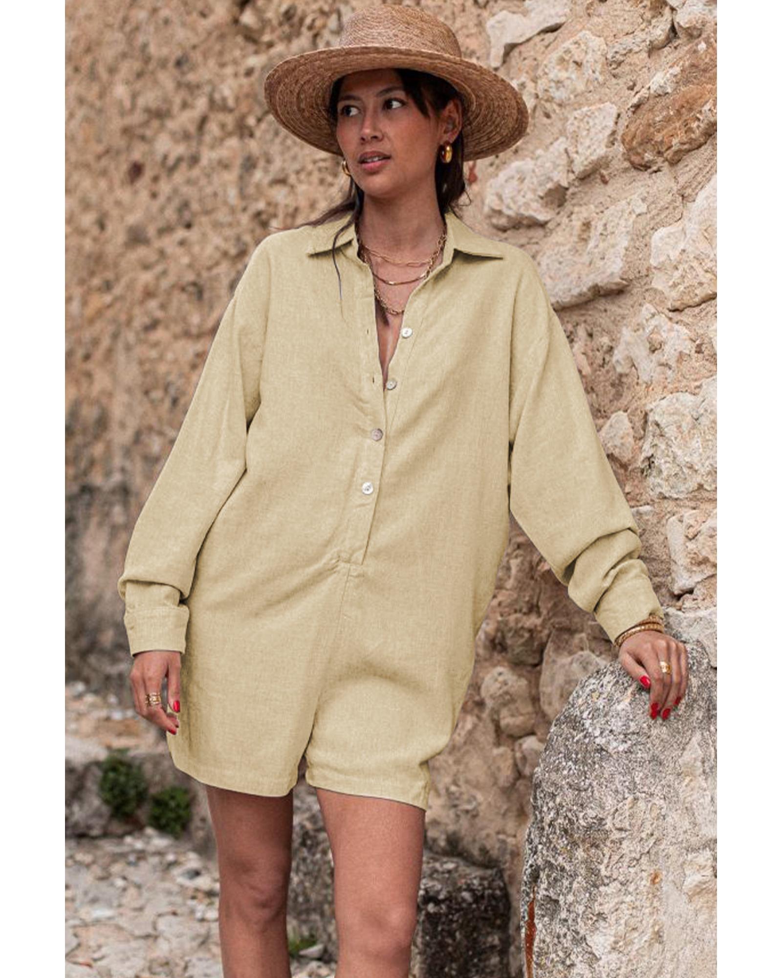 Half Button Shirt Collar Long Sleeve Loose Romper – L