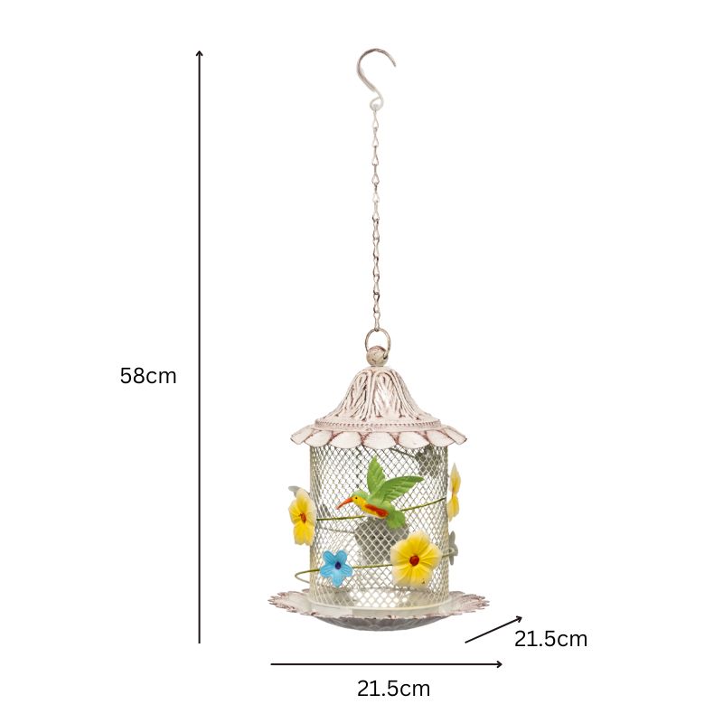 Hanging Mesh Birdfeeder w Flowers + Bird 58cm