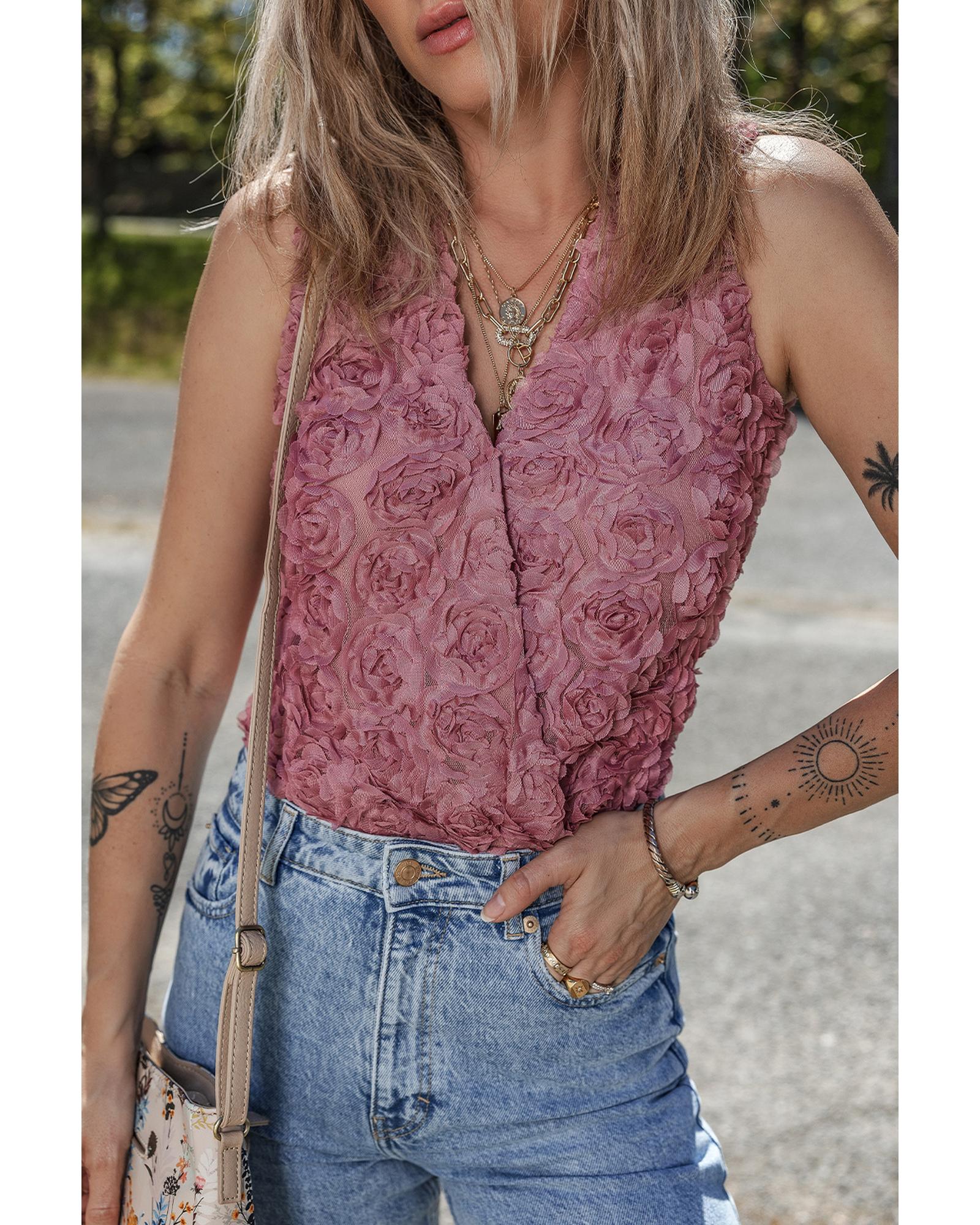 Heather Floral Textured V Neck Wrapped Sleeveless Bodysuit – M
