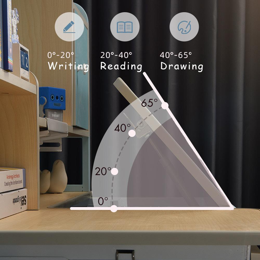 -Tilted Desktop: The desktop and bookshelf can be tilted between 0 and 65 degrees, which will provide the best angle for writing, reading, drawing and so on.