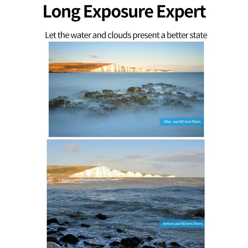 • The ND filter is a filter with a light reduction effect to prevent overexposure, and can be used under three different light conditions to make the photo more vivid.