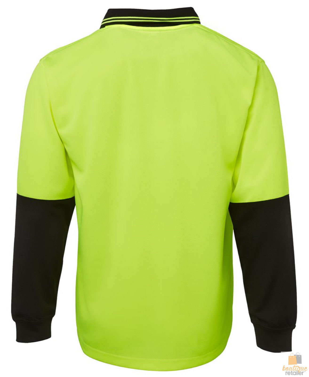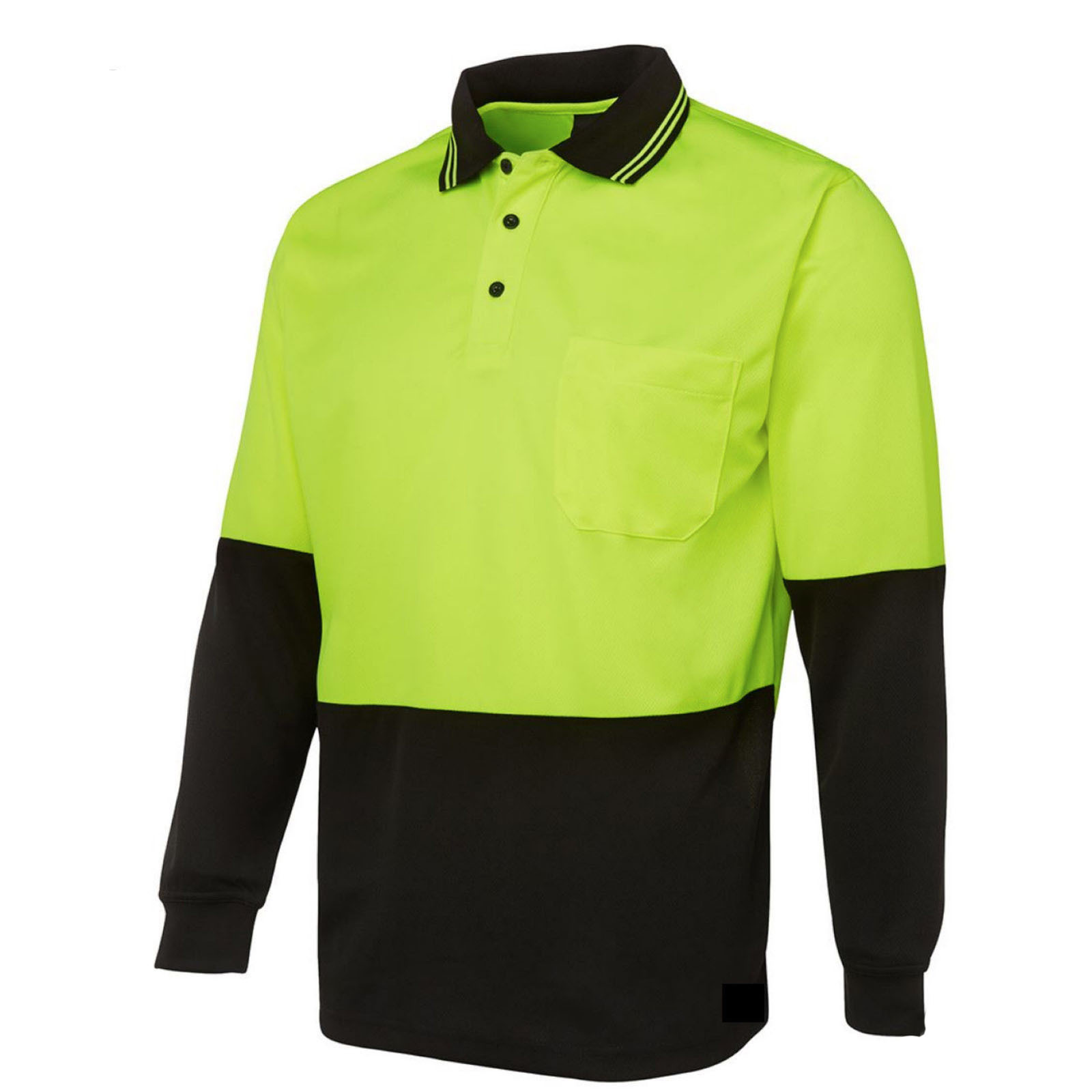 HI VIS LONG SLEEVE POLO SHIRT Top Safety Workwear Fluro Breathable Dry WB – Yellow – XL