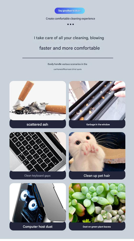 • Versatile Use: Excellent for cleaning dust from PC cases, keyboards, mainboards, car interiors, and other household items.