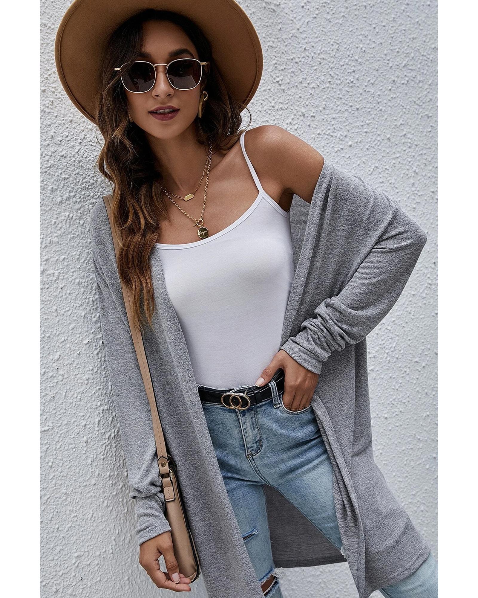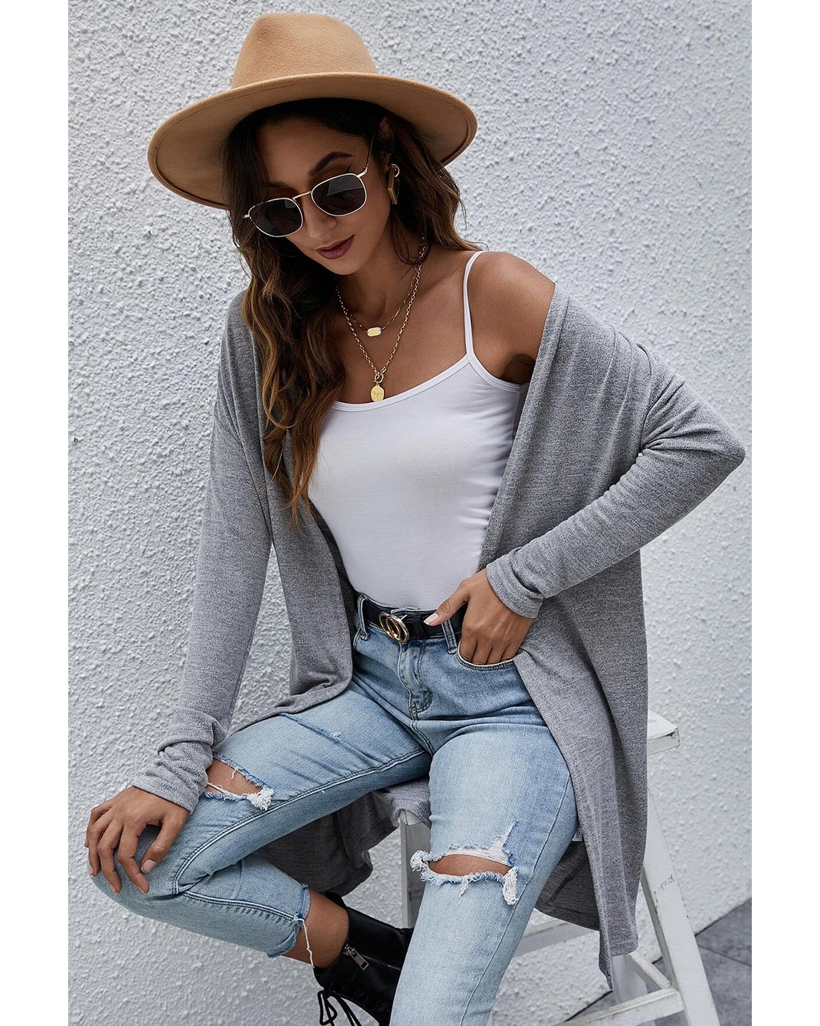 High Rise Solid Color Open Front Lightweight Cardigan – M