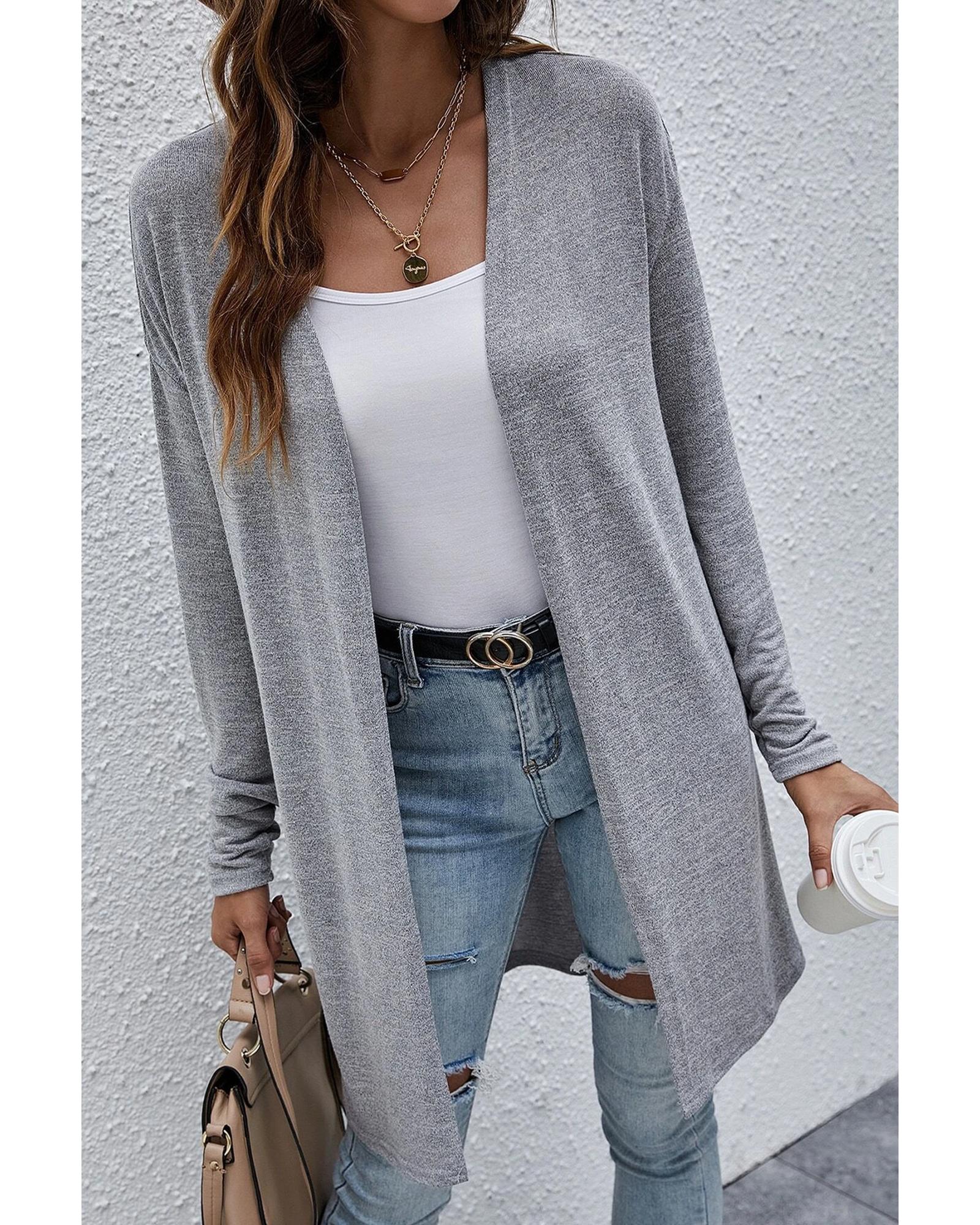 High Rise Solid Color Open Front Lightweight Cardigan - S